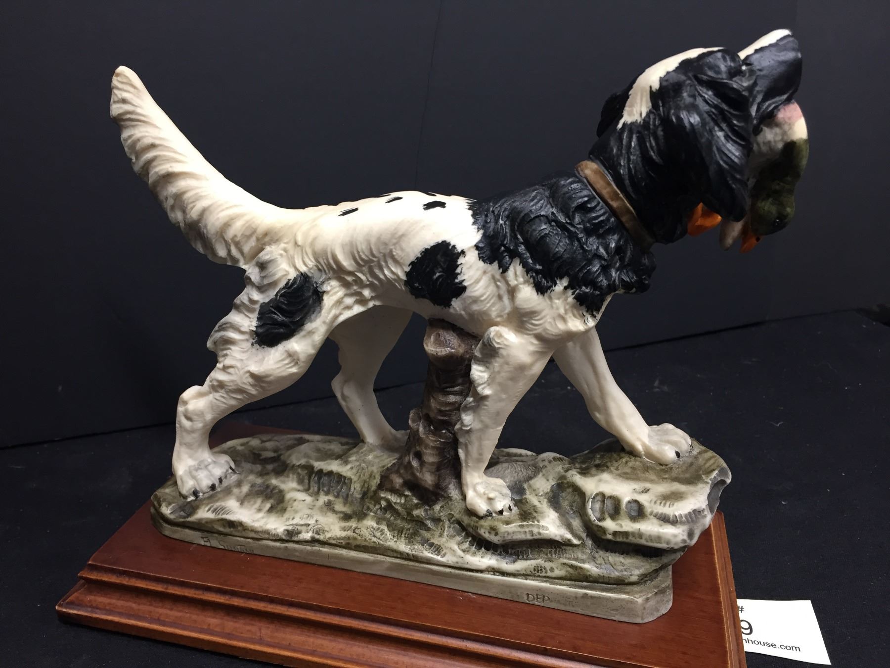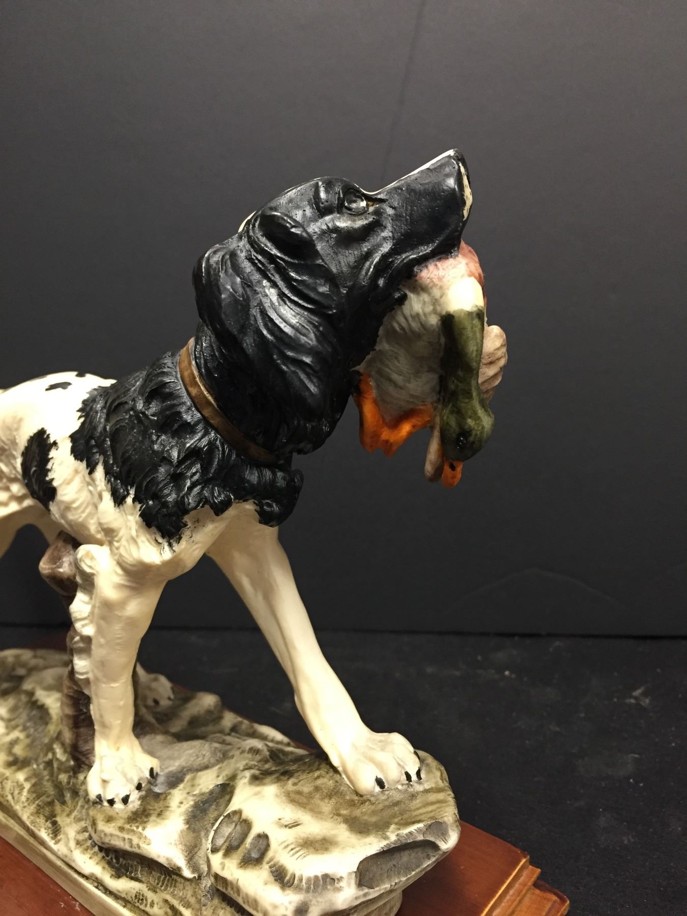 A Nice Statue of a Pointer Dog Holding a Duck In his Mouth. Mounted on a Stand. Very Nice Hunting Dog Decoration.