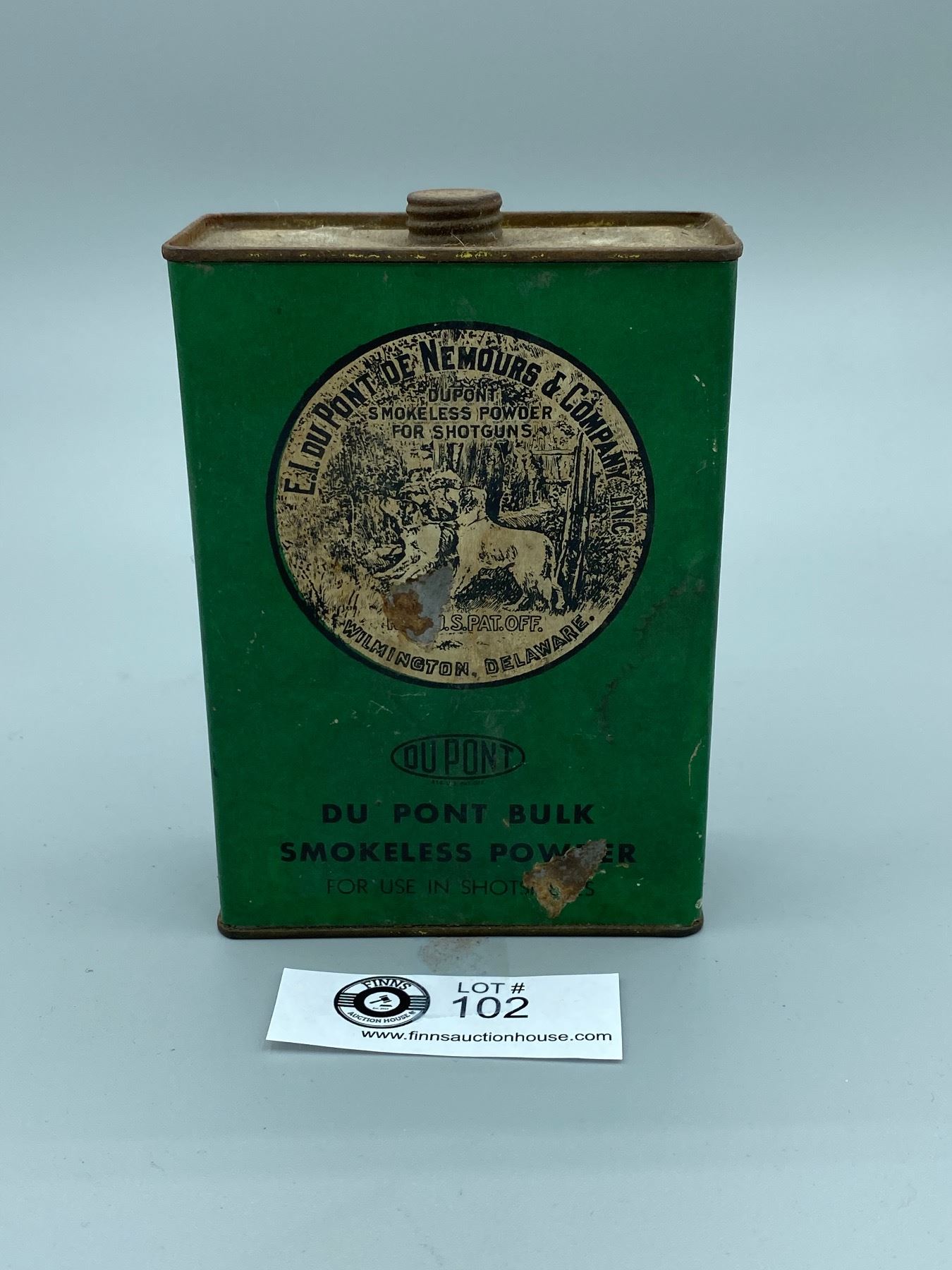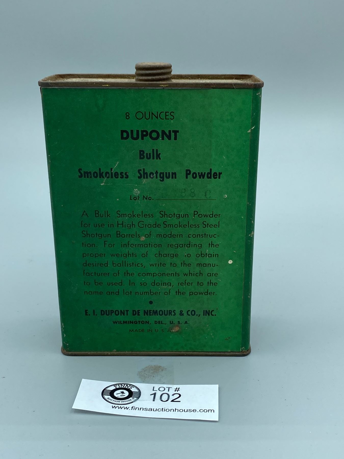A Nice Vintage Paper Label 8oz Dupont Smokeless Shot Gun Powder Tin