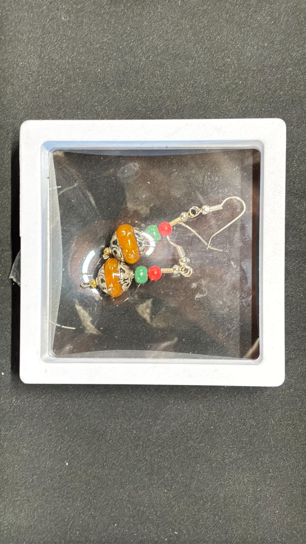 A PAIR OF SINO-TIBETAN BEESWAX EARRINGS