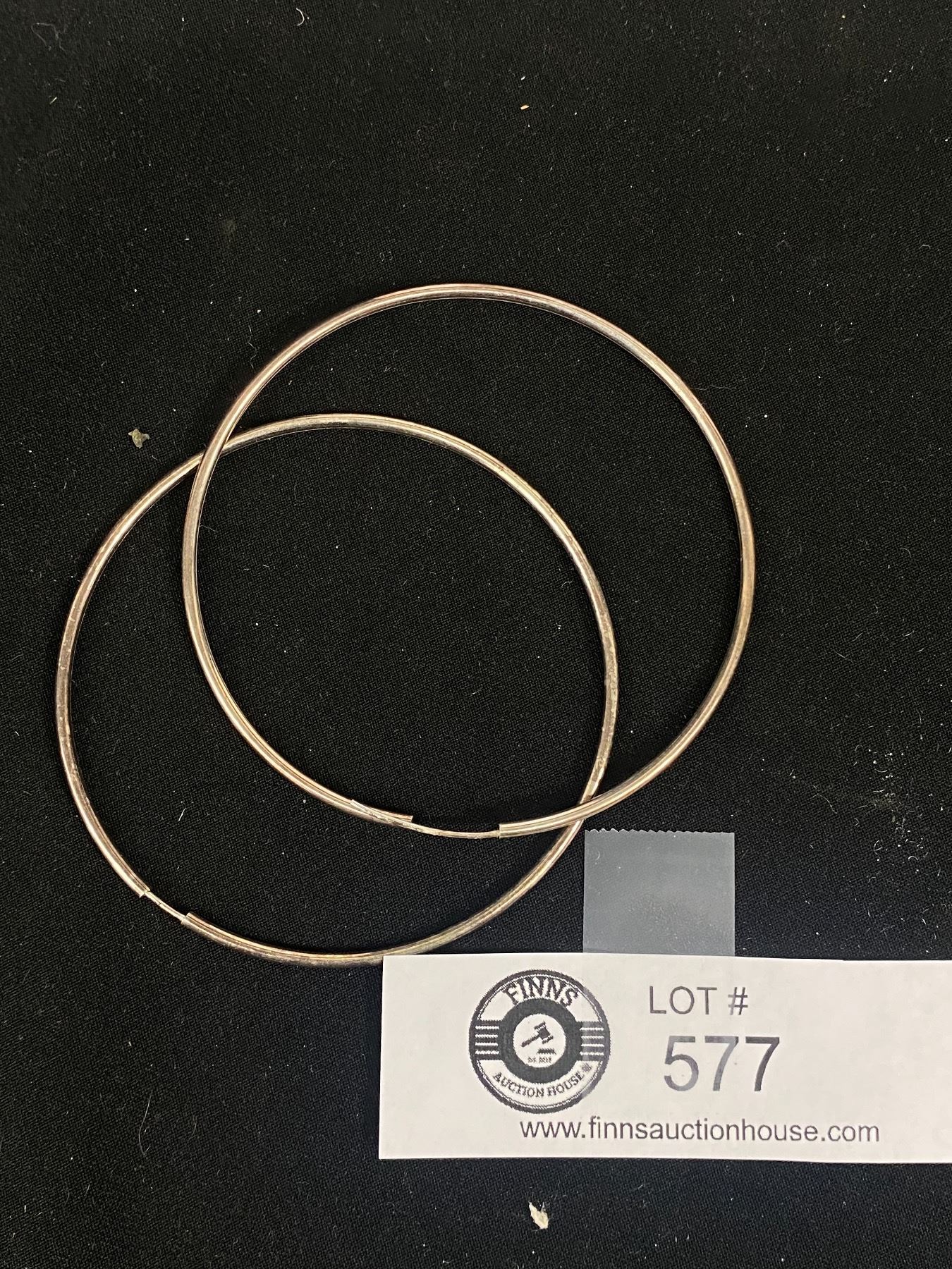 A Pair of Large 3  Sterling Silver Hoop Earrings