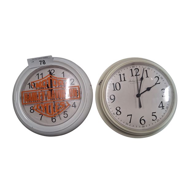 2 vintage clocks, 1 is Harley Davidson 9" diameter