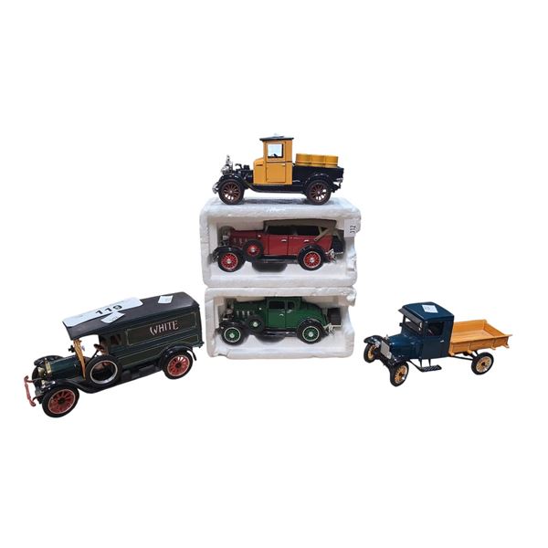 122 - 4 die cast cars, 1951 Ford conv coupe, 1964 Ford Galaxie, 1957 Corvette, Ford T-Bird, longest is 6"Clint the Collector Auctions