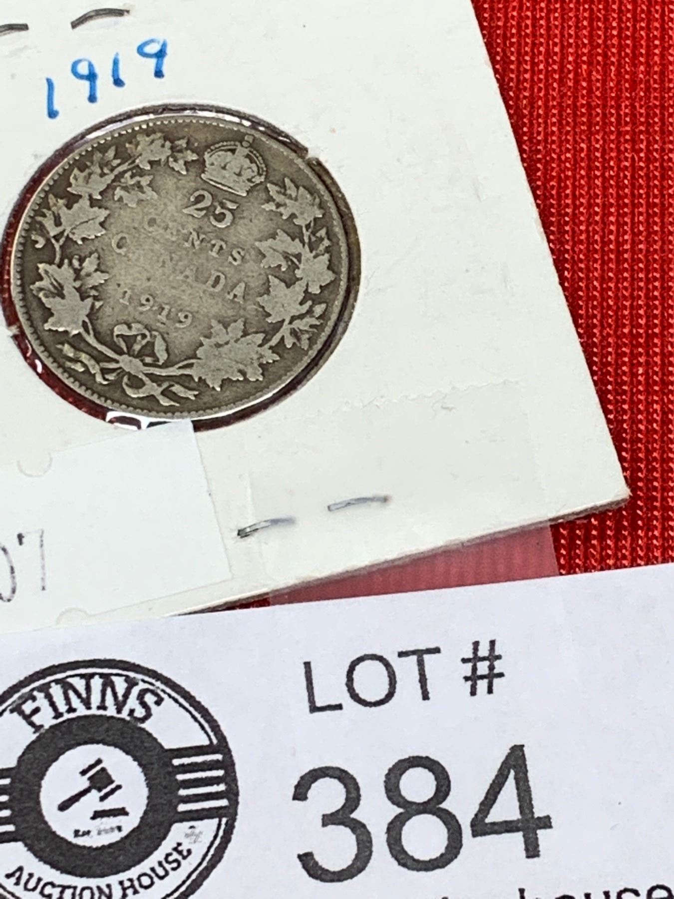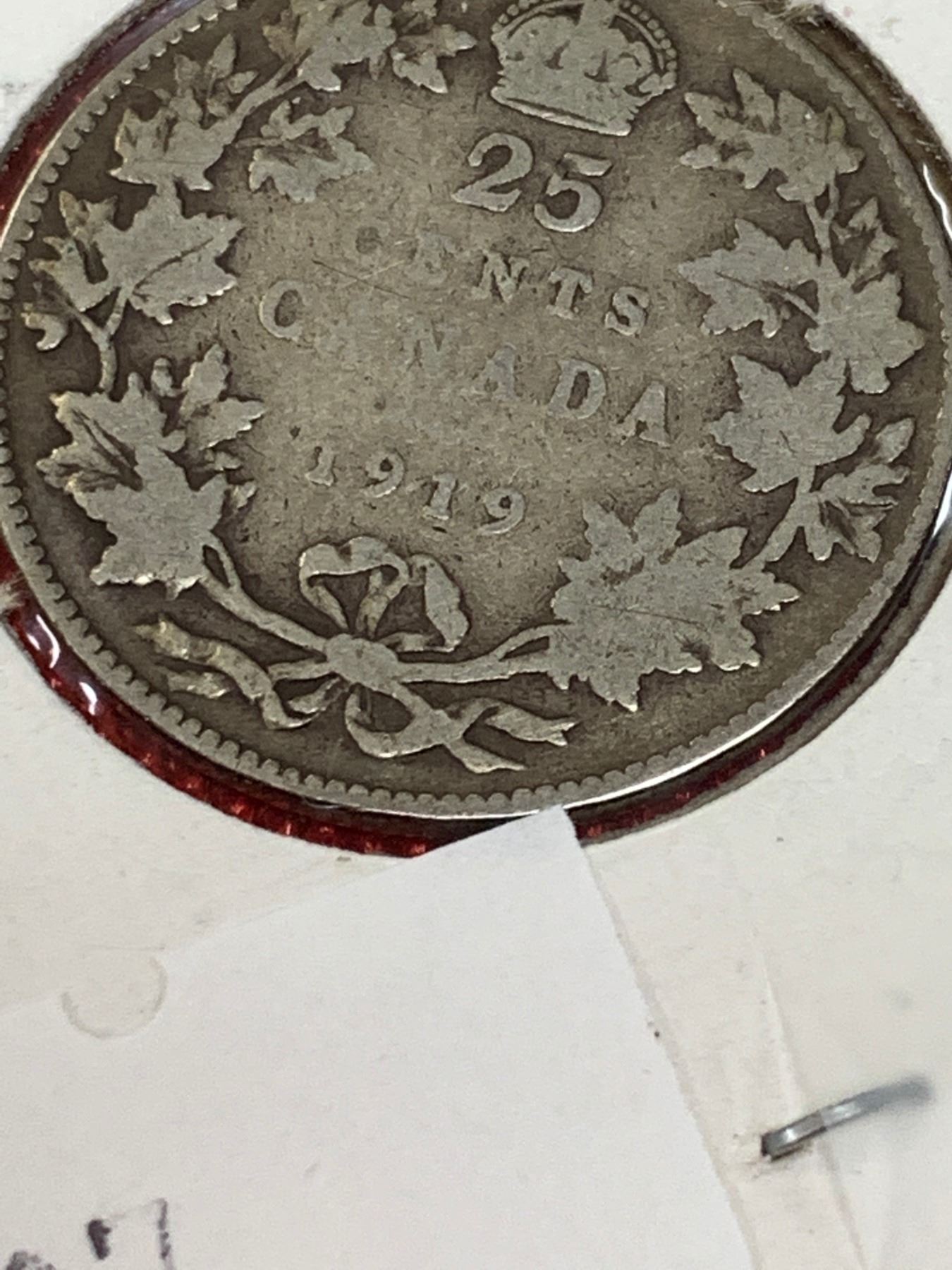 A Silver 1919 Canadian Quarter 25 Cent Coin