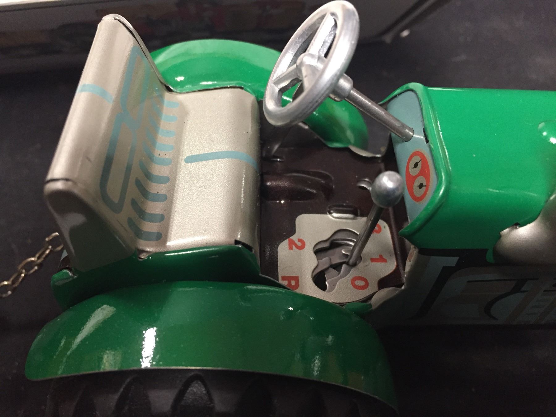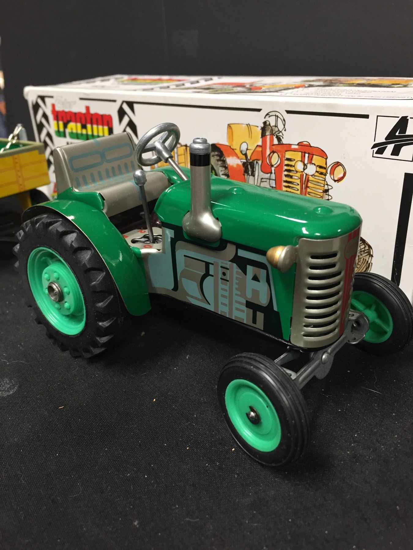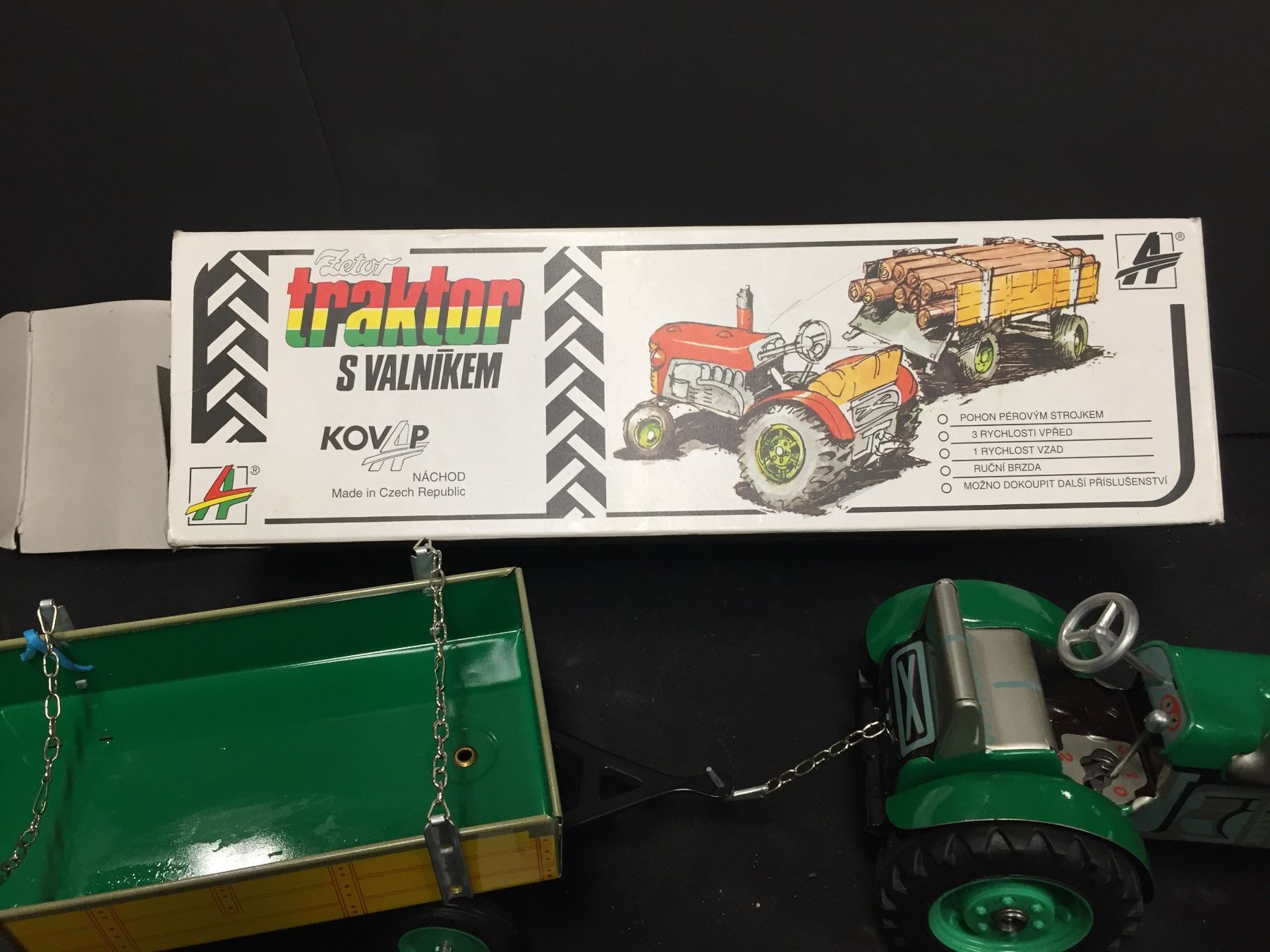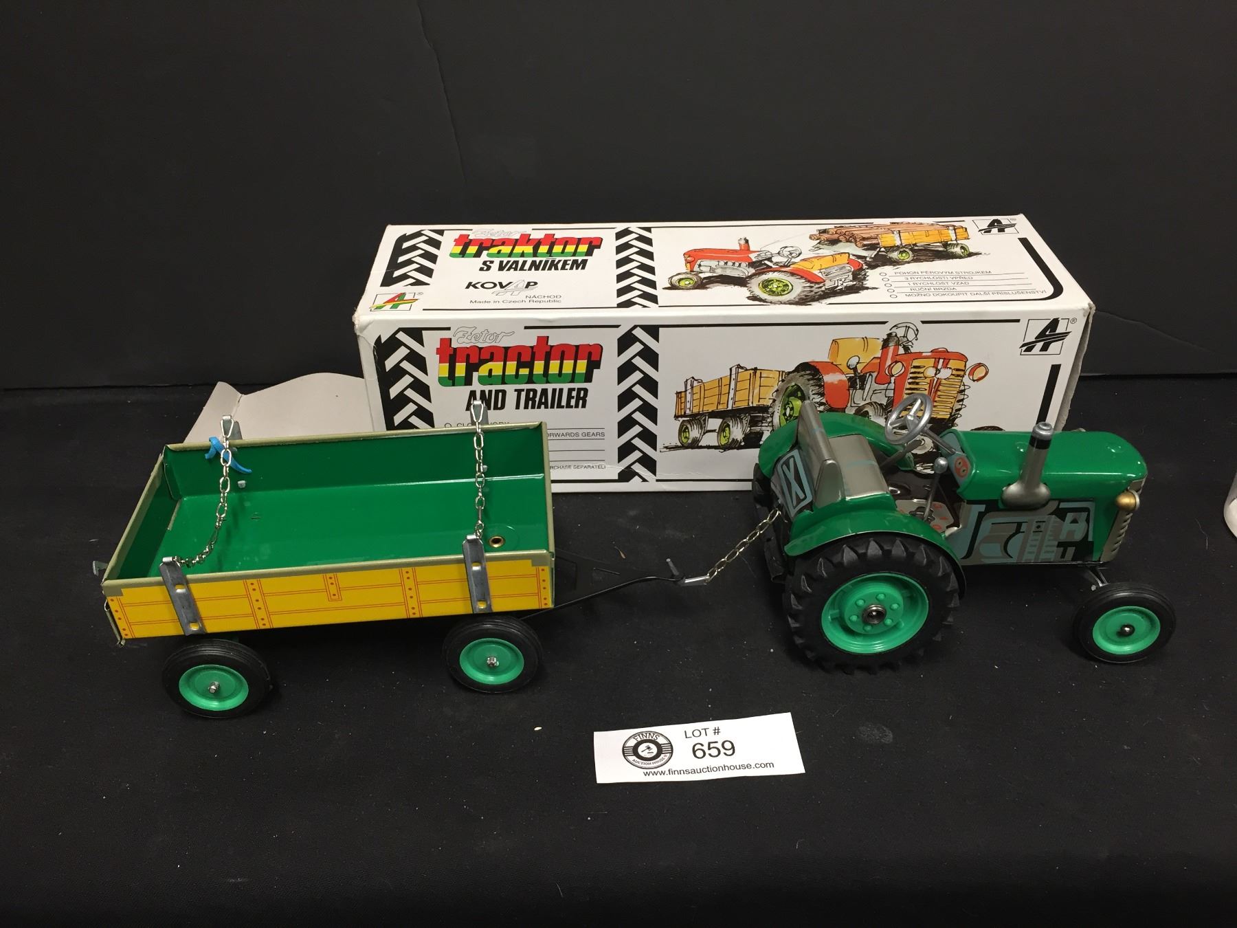 A Tin Tractor and Trailer In the Box.. Comes from the Czech Republic. Has all The Gears and Reverse Gear is Pretty Neat.