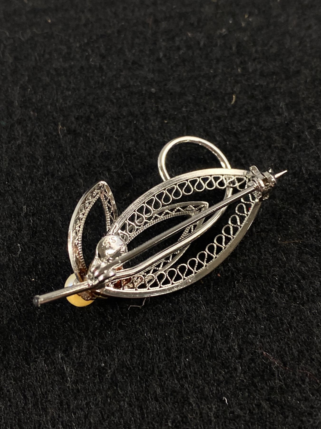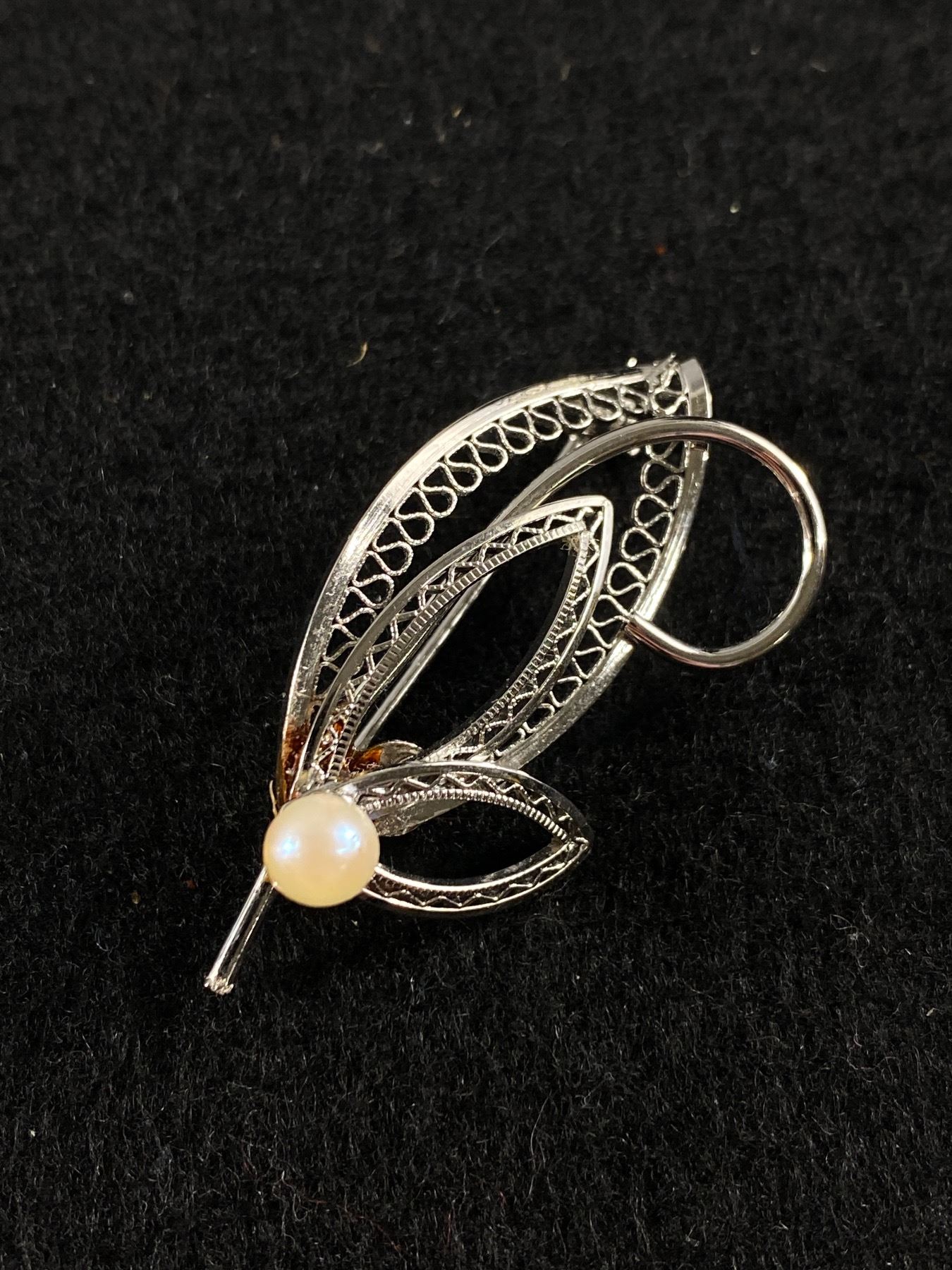 A Very Nice 1950s-60s Sterling + Real Pearl Brooch Signed Amsel