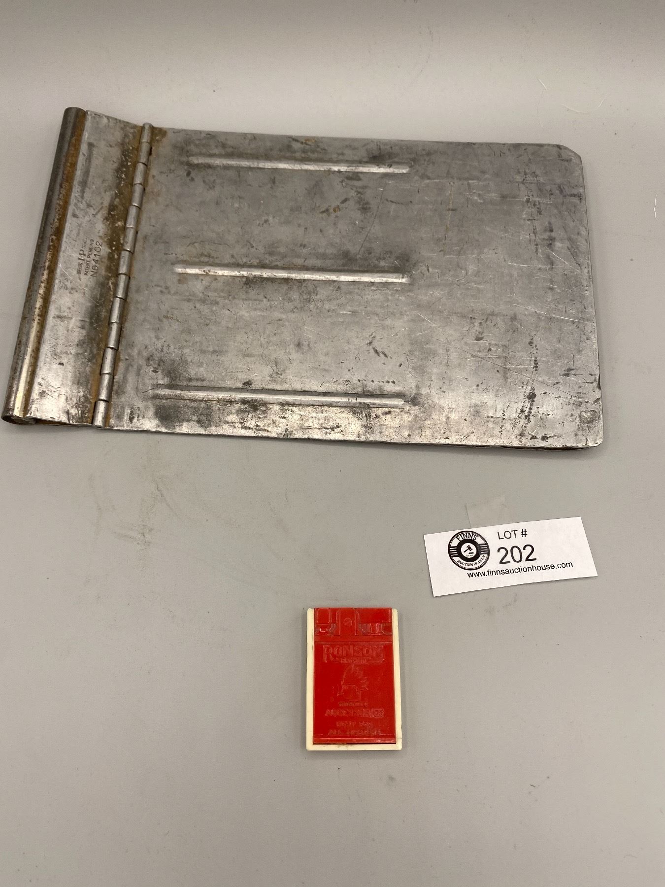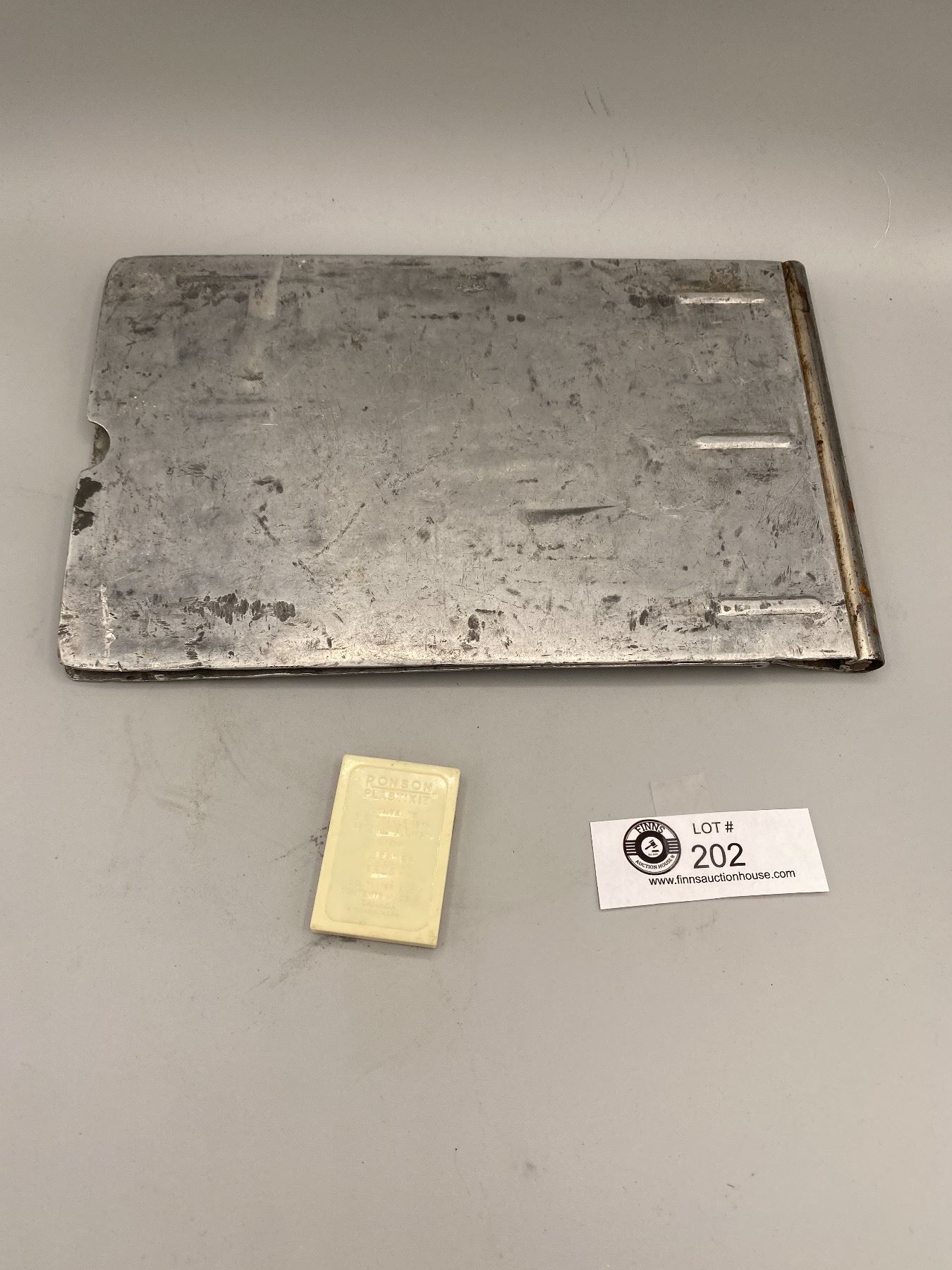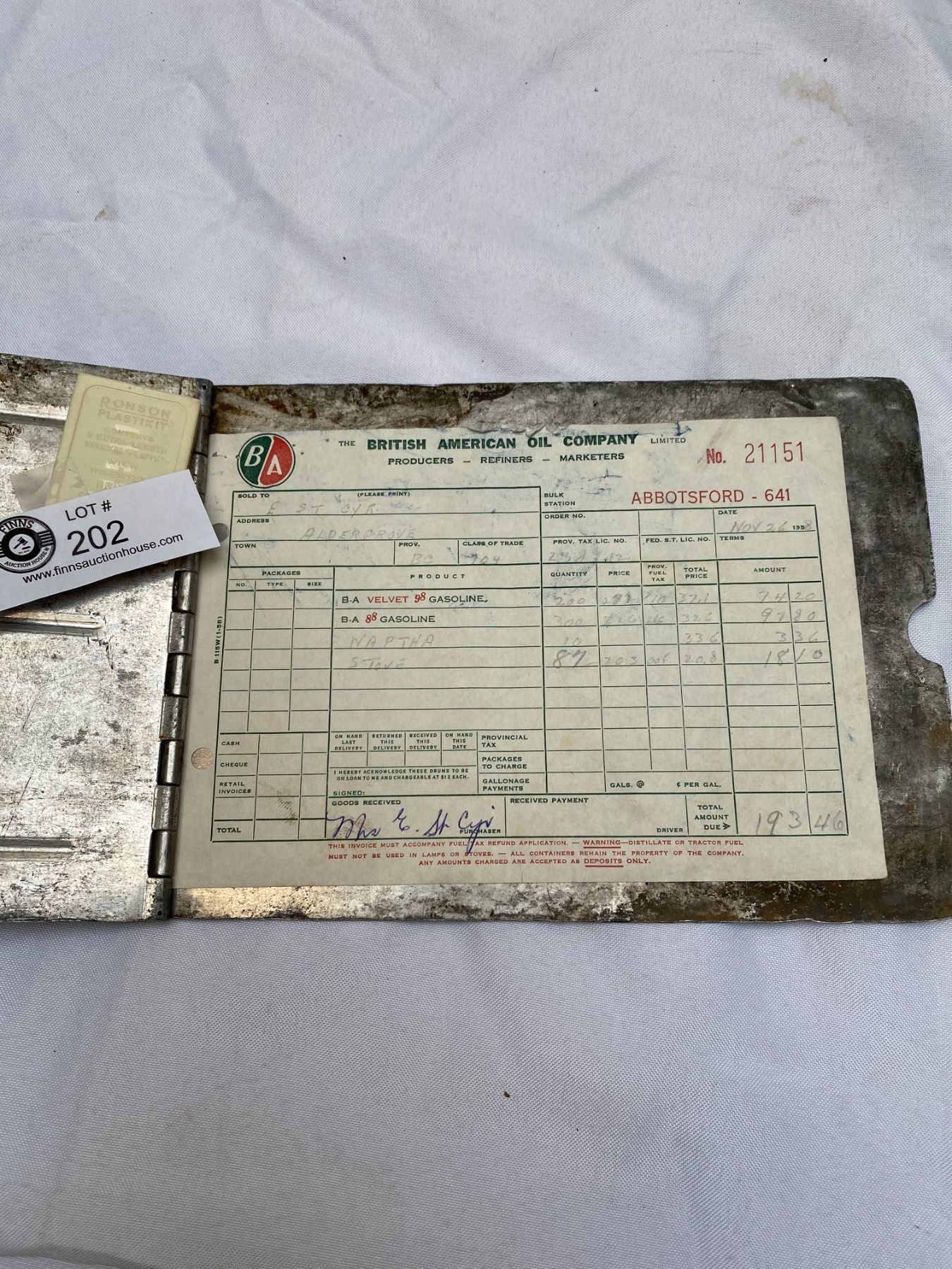 A Vintage Hard Reciept Book with a BA Reciept and a Ronson Flint Holder
