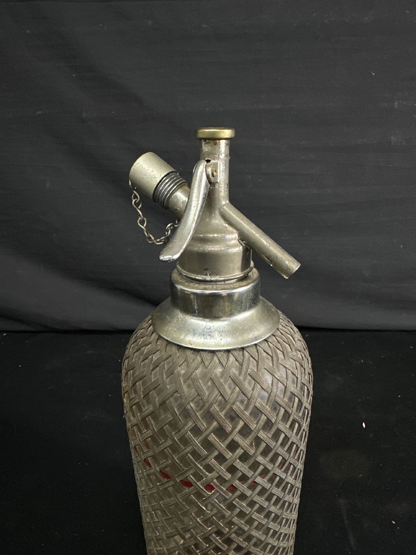 A Vintage Made In Czecho Slovakia Wire Mesh Szeltzer Bottle