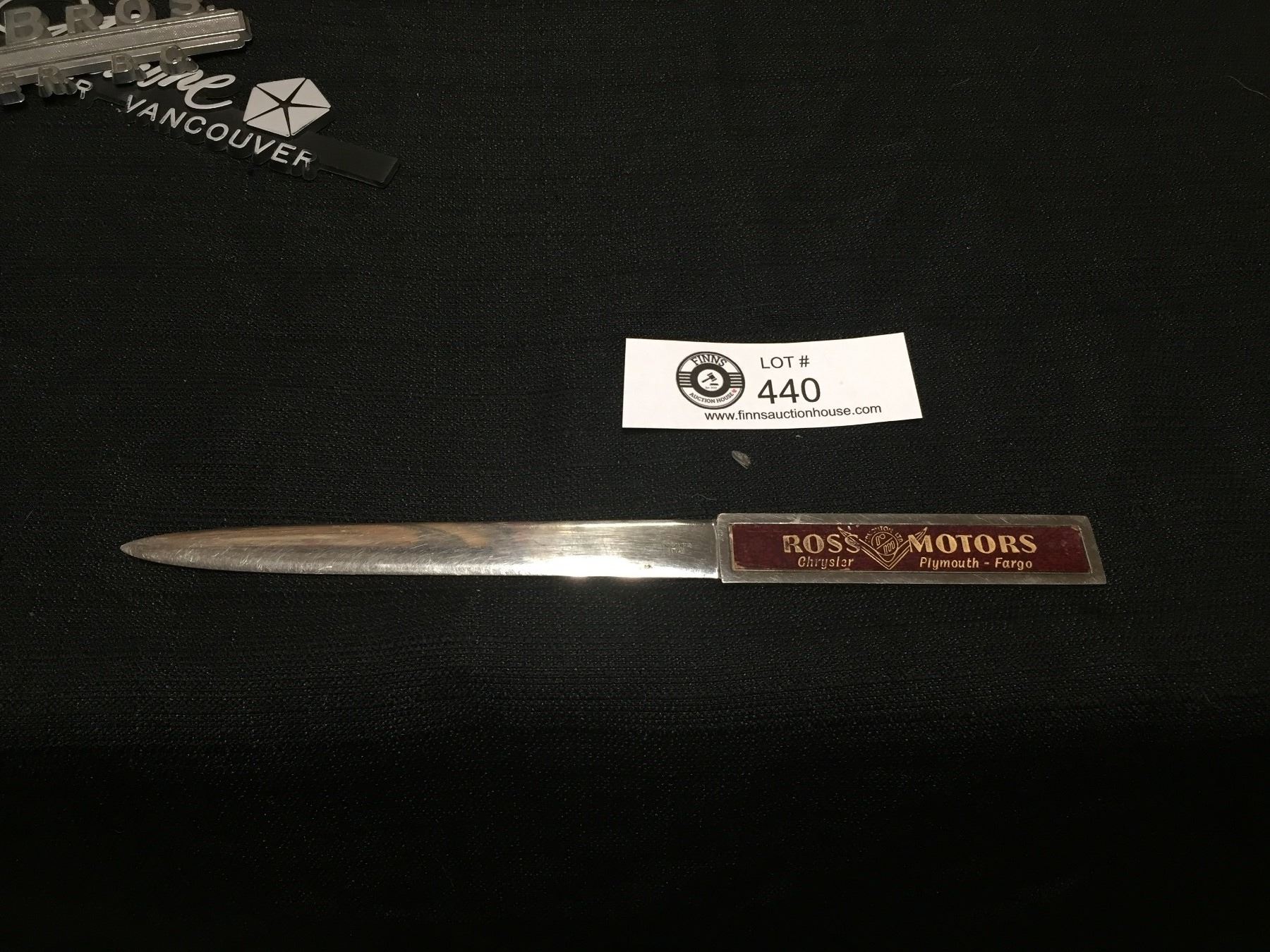 A Vintage Ross Motors Chrysler Plymouth Fargo Letter Opener from Edmonton