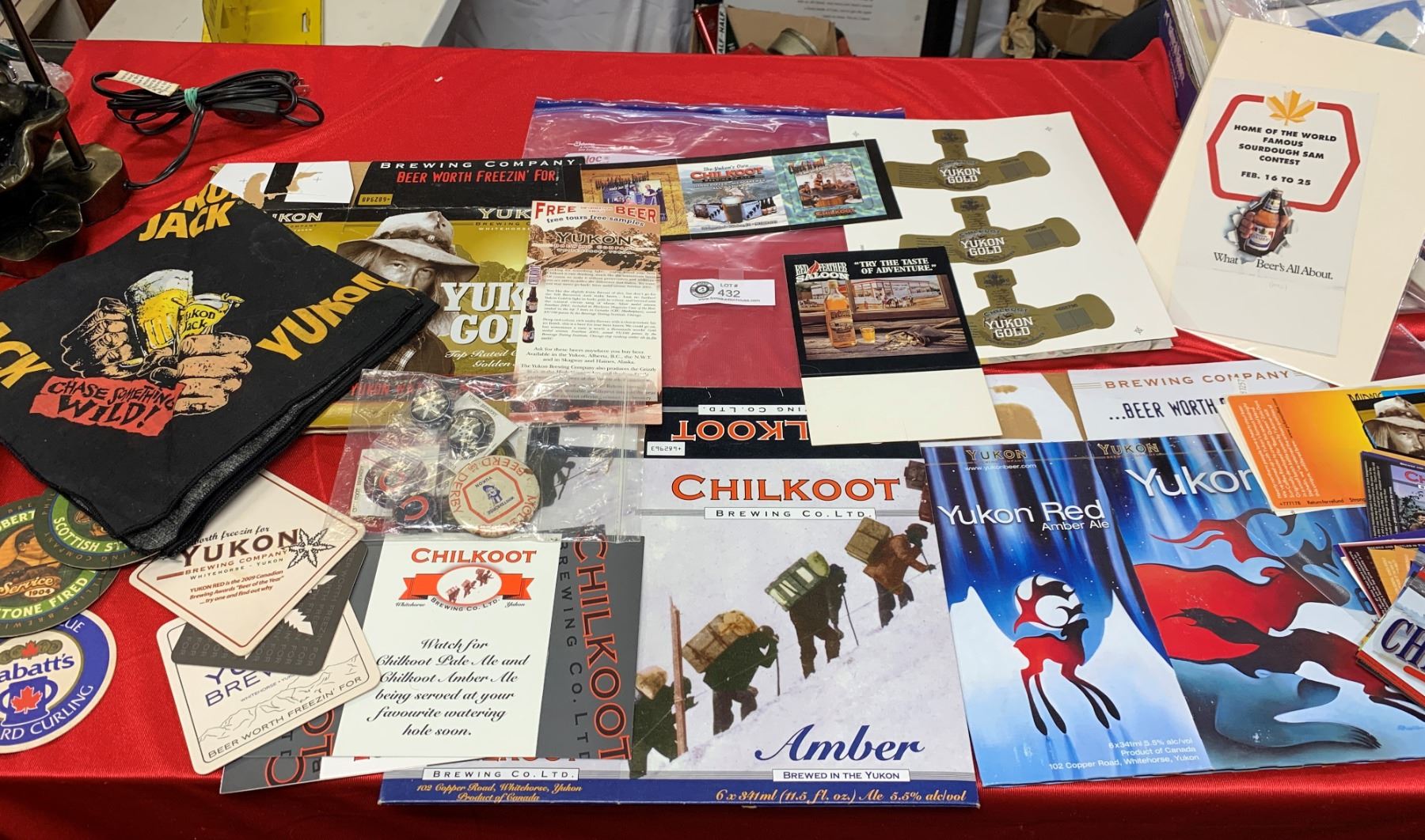 A Yukon Beer Ephemera Collectible Lot. Pins, Coasters, Buttons Etc