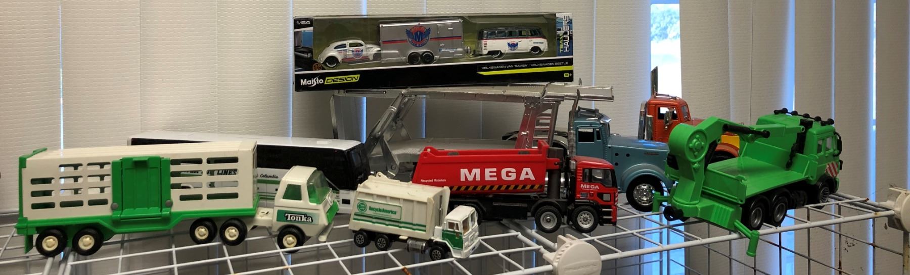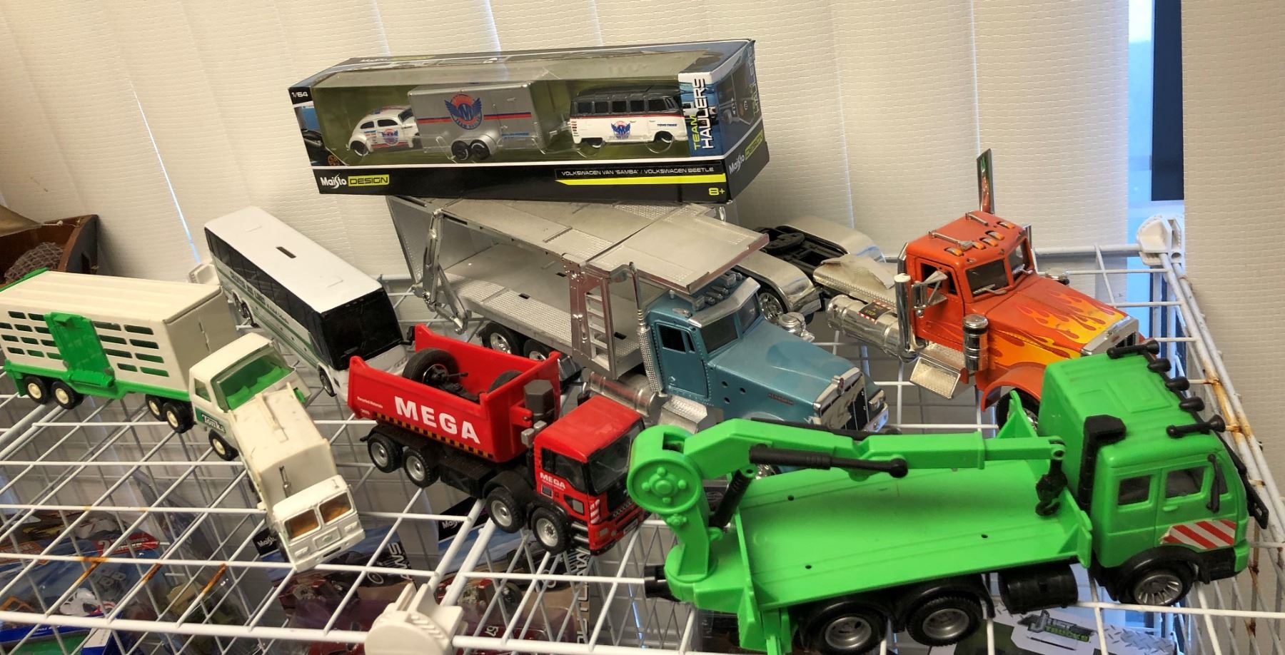A group of truck toys/ a team hauler etc.