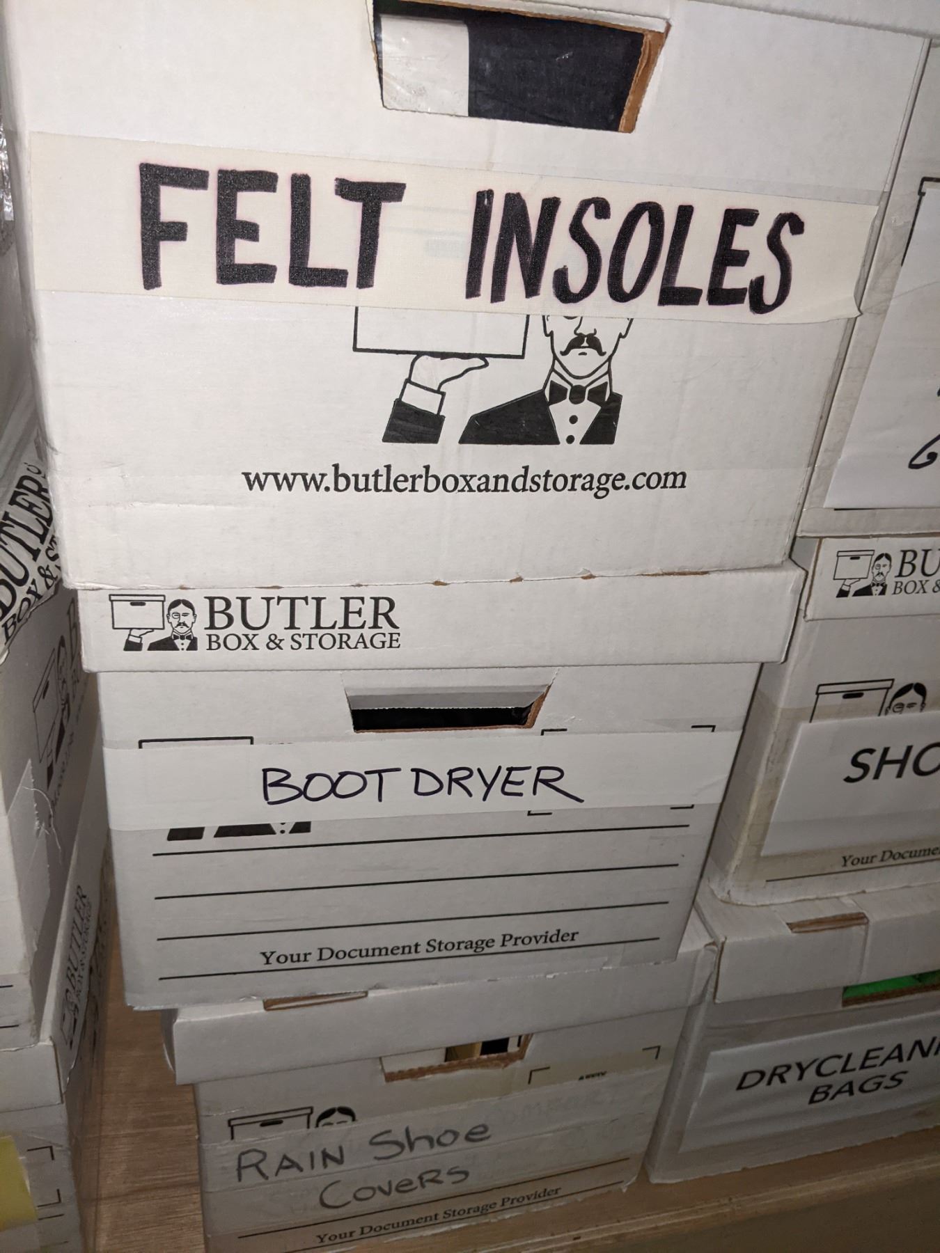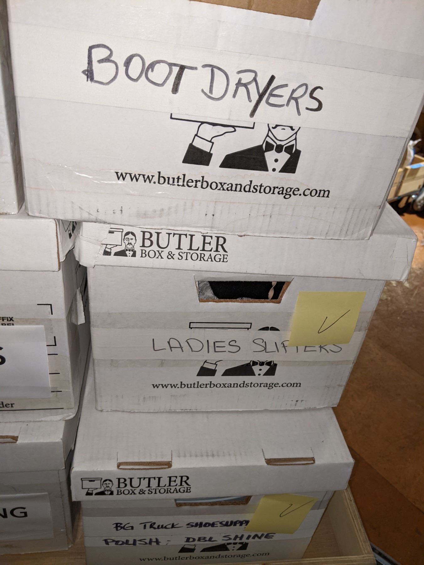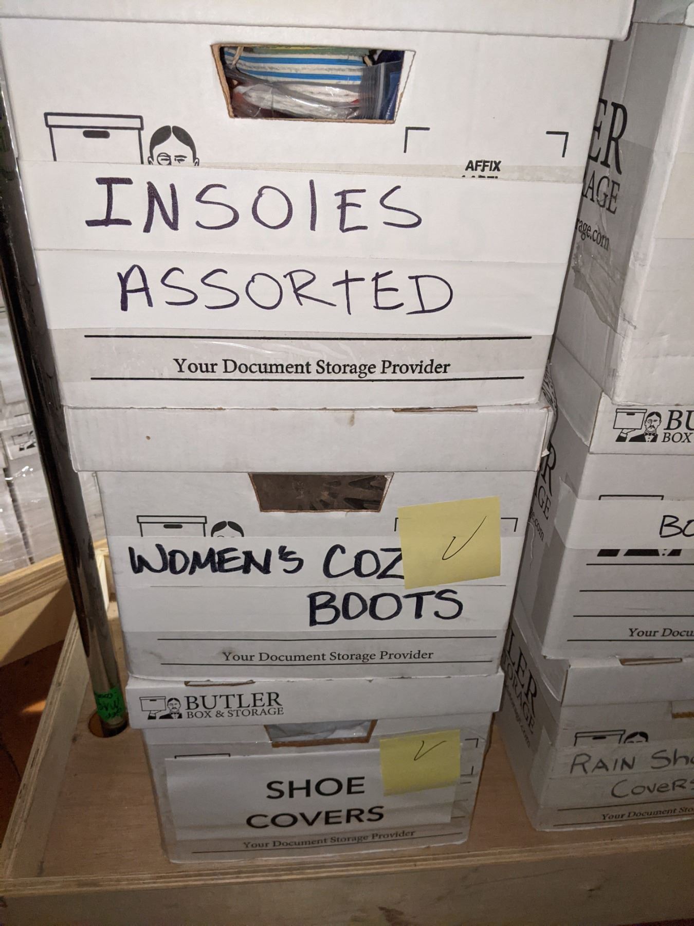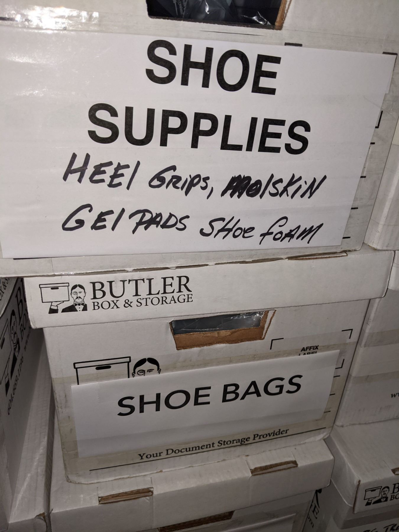 Boot bags, shoe supplies, assorted insoles, ladies slippers and etc