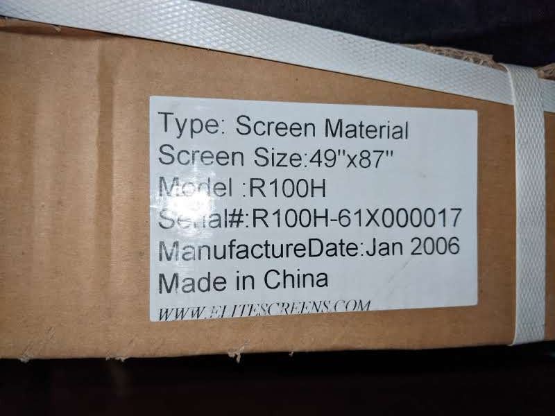 Seven 49'x87', four 45'x80', 2 59'x105', six assorted screens, three boxes of brackets for ceiling speakers,