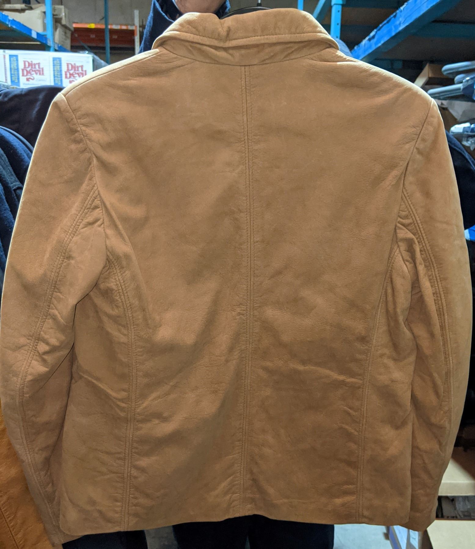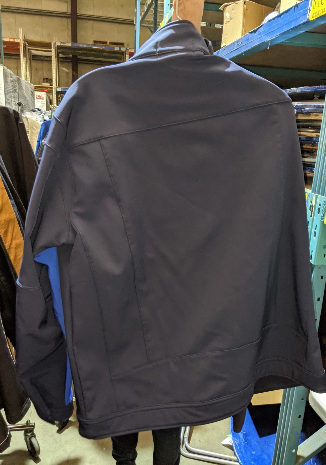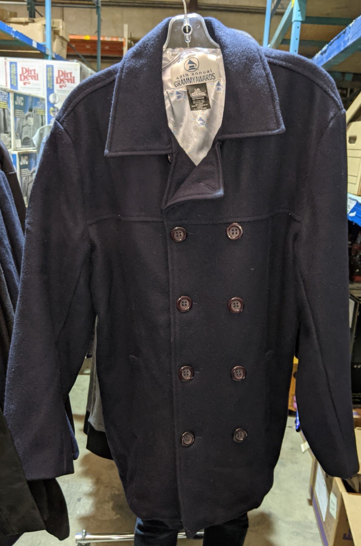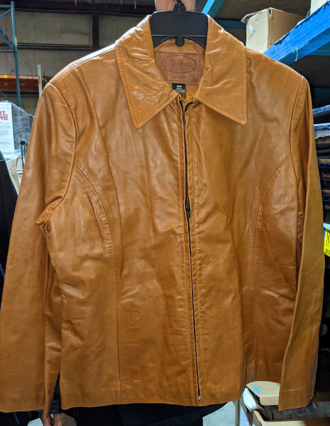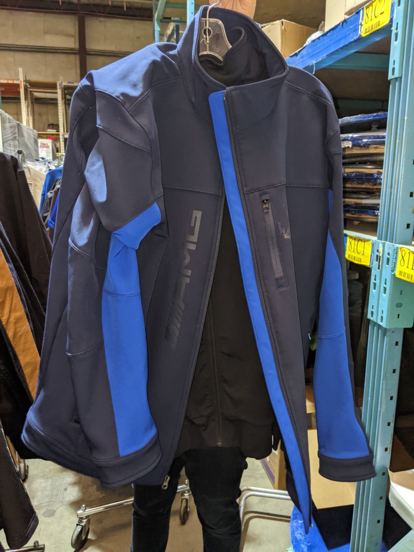 A rack full of jackets(especially made for 49th annual Grammy awards) leather jackets and other clothes