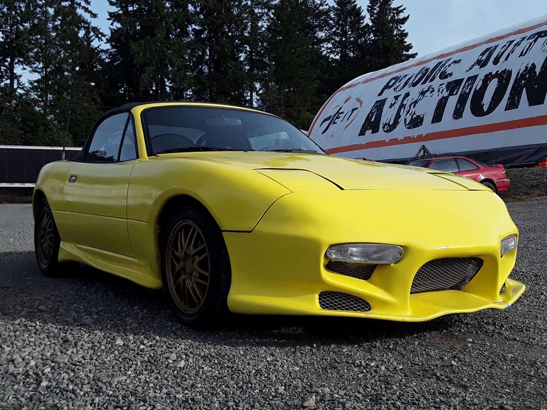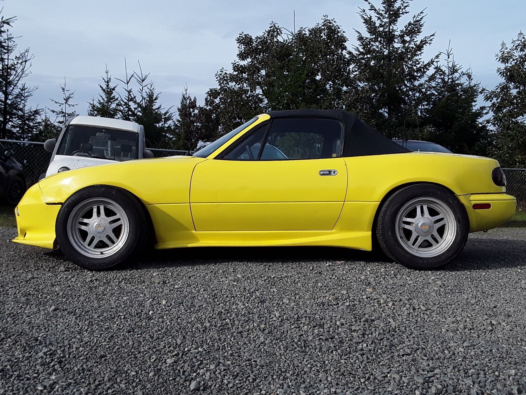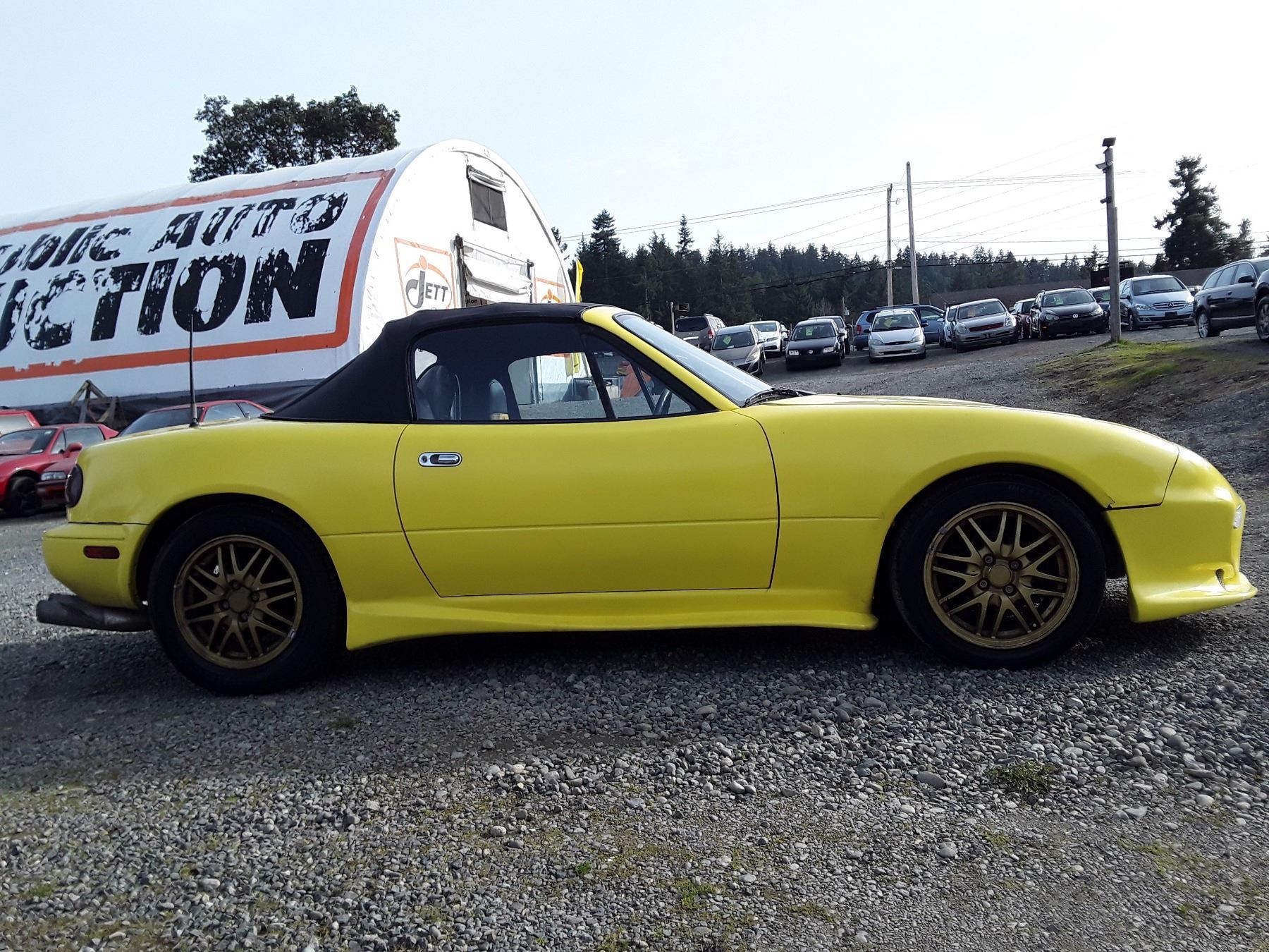 Auction Notes : Soft Top Convertible, Comes W/Brand New Side Mirrors In Box + Original Miata Giallo Edition Alloy Wheels, Consignor Declares: Turns Over And Briefly Runs, Does Not Stay Running For More Than A Few Sconds, Consignor Declares That It Is Likely Mass Air Flow Sensor, Shift Linkage Needs Repair (Does Not Go In Reverse), Being Sold As-Is With No Returns