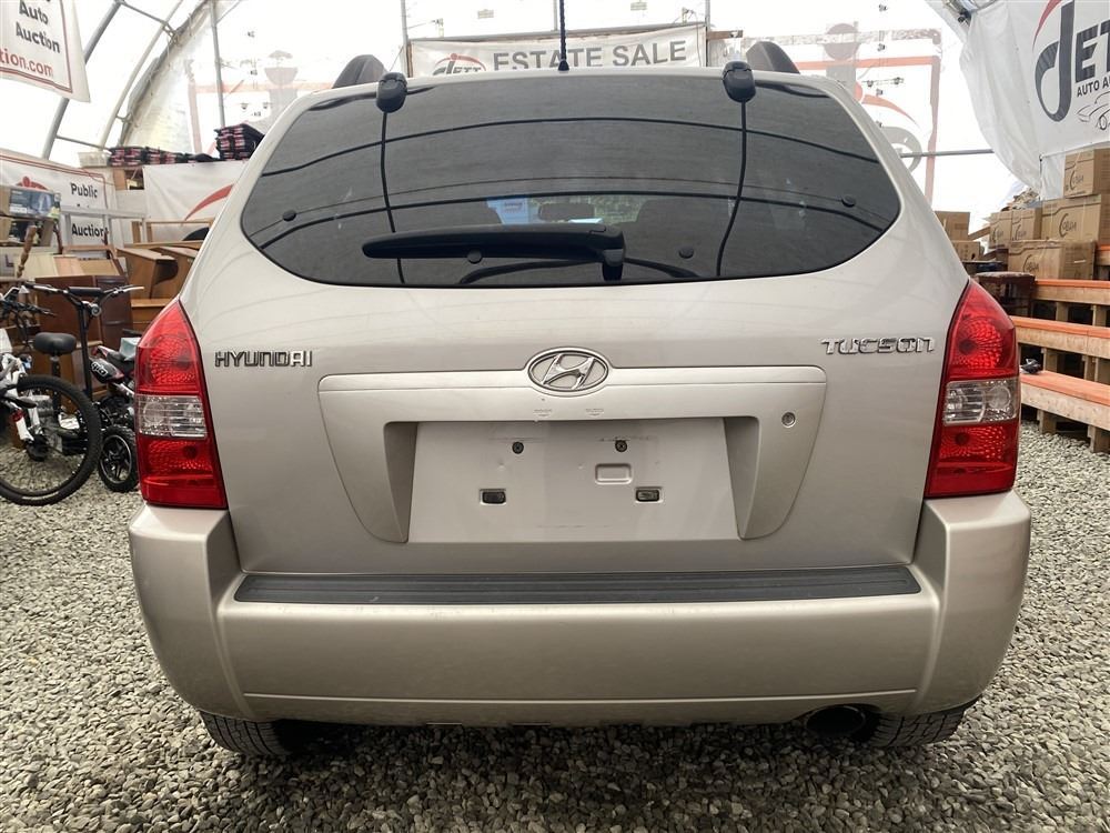 2006 HYUNDAI TUCSON, SILVER, 307855 KMS, 2.0L, 4 CYLINDER, GASOLINE, MANUAL, TRANSMISSION, FRONT WHEEL DRIVE, 5 PASSENGER. AIR CONDITIONING, POWER WINDOWS, POWER LOCKS, KEY-LESS ENTRY, TILT STEERING, ALLOY WHEELS, DUAL AIR BAGS, CD PLAYER, AFTERMARKET STEREO, TRACTION CONTROL, ROOF RACK, POWER MIRRORS, NO REPORTED ACCIDENTS., CHIP OR CRACK IN WINDSHIELD, . DECLARATIONS: NO DECLARATIONS NOT MECHANICALLY INSPECTED, NOT SUITABLE FOR TRANSPORTATION. MUST TOW.0 ACCIDENTS 0 GLASS CLAIM, TOTALING $0. GOOD SERVICE HISTORY, CARFAX SHOWING 24 RECORDS.