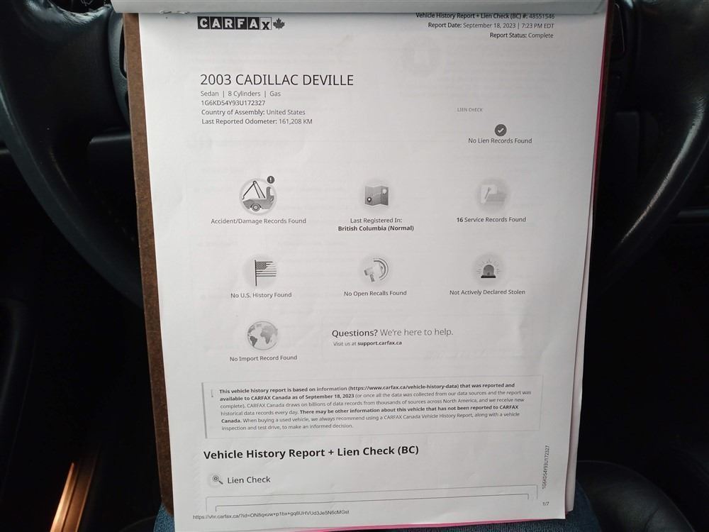 Automatic transmission and NORTHSTAR 4.6 Litre Engine, 8 Cylinder, Front Wheel Drive, 180237 KMBlue, 6 PassengerDeclarations - , Damage Claims, 4 CLAIMS+ 1 GLASS TOTAL $3820 , Power Steering, Power Brakes, Intermittent Wipers, Dual Air Bag, AM/FM Stereo , Rear Defroster, Bucket Seats, Anti Lock Brakes, Front Disc Brakes-Air Conditioning, Power Windows, Power Locks, Keyless Entry, Tilt Steering, Cruise Control, Alloy Wheels, Anti Theft, CD Player, Leather Seats, Power Seats, Heated Seats, Memory Seats, Heated Mirrors, Information Center, Traction Control, Rear Heat and Air, Steering Wheel Controls, Power Mirrors Auction Notes : Rear Heated Seats Dual Exhaust, The Following Work Done @161208km: Drive Belts Replaced, Sway Bar Links Replaced, Valve Cover Gasket, Comes With Receipts, See Pictures