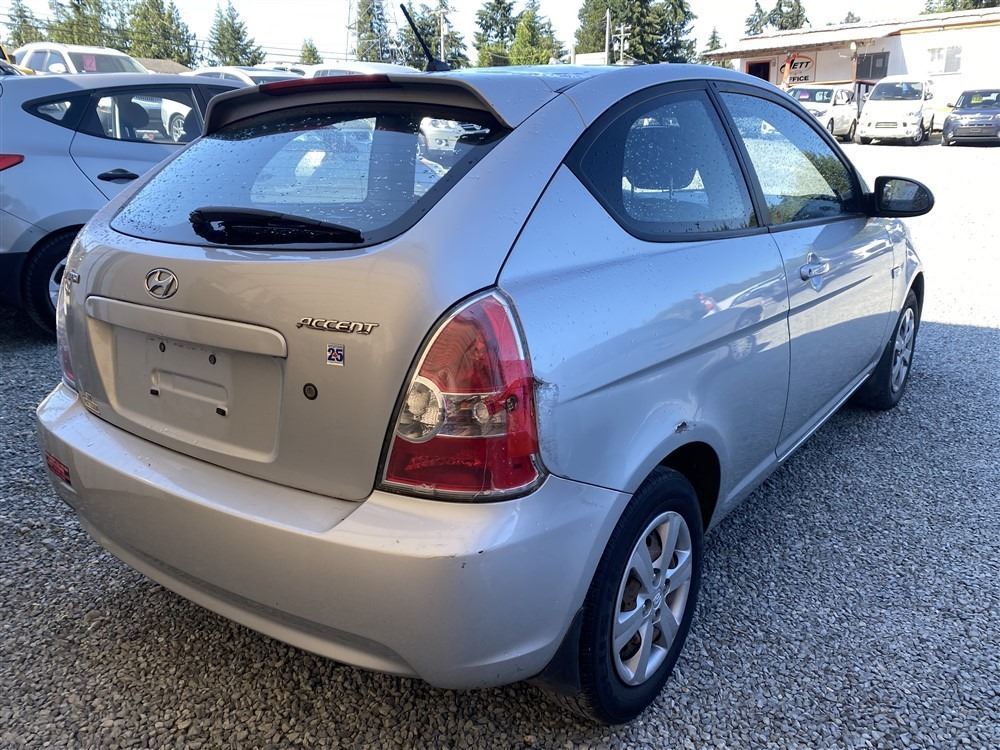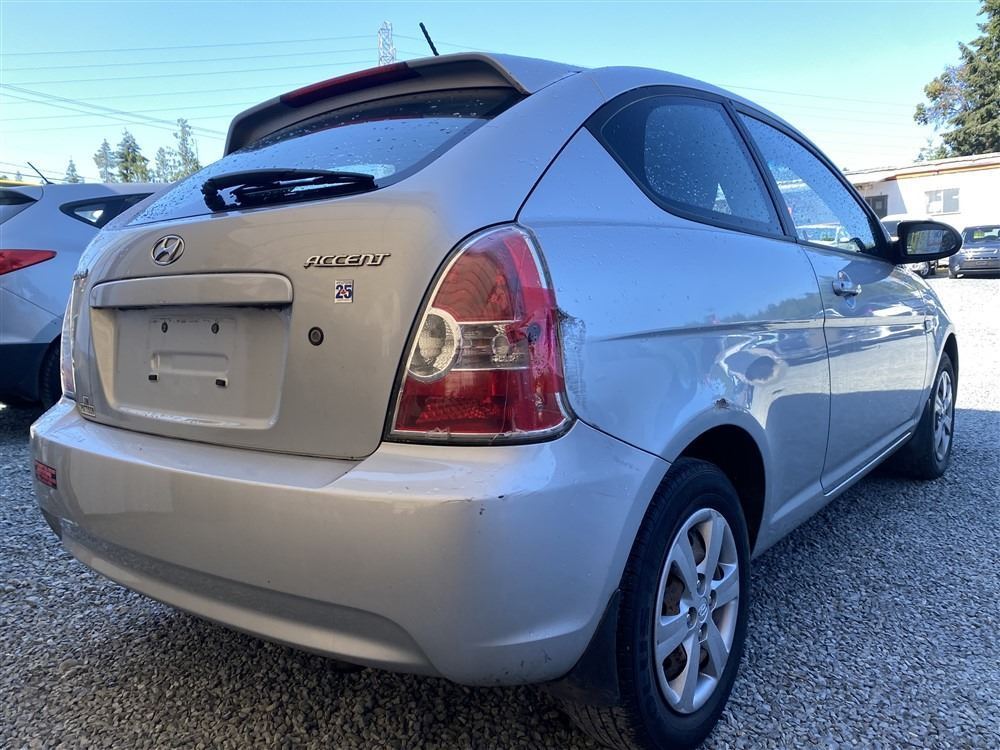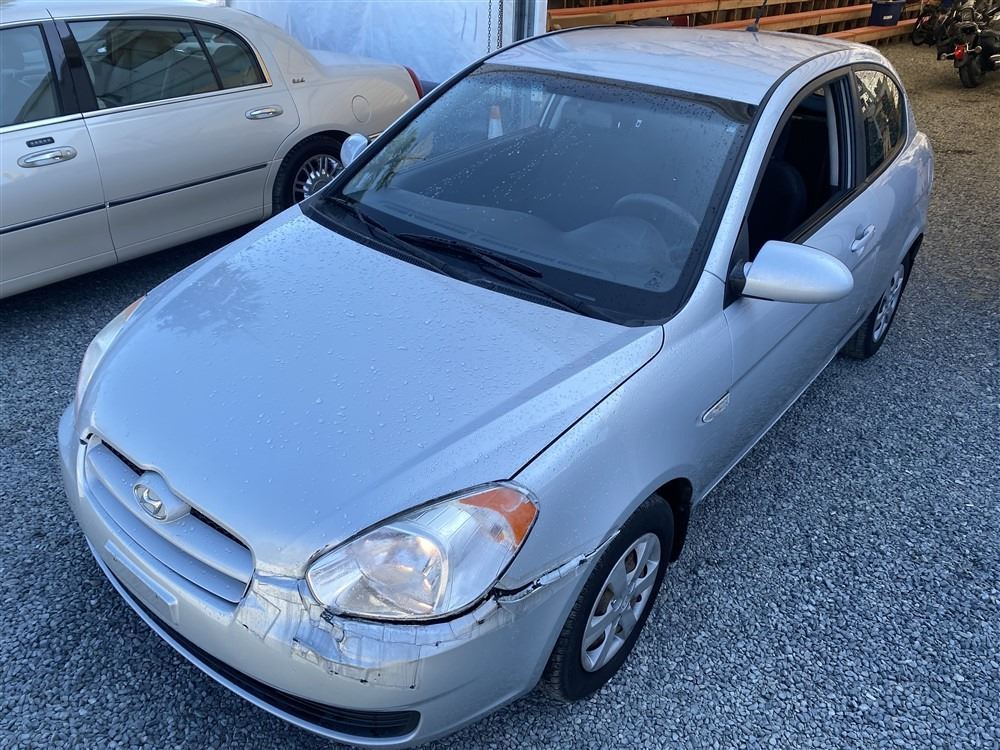 2008 HYUNDAI ACCENT, SILVER, 243771 KMS, 1.6L, 4 CYLINDER, GASOLINE, AUTOMATIC, TRANSMISSION, FRONT WHEEL DRIVE, 5 PASSENGER. TILT STEERING, DUAL AIR BAGS, CD PLAYER, CHIP OR CRACK IN WINDSHIELD, . DECLARATIONS: NOT MECHANICALLY INSPECTED, NOT SUITABLE FOR TRANSPORTATION. MUST TOW.3 ACCIDENTS 0 GLASS CLAIM, TOTALING $1832. SERVICE HISTORY SHOWS0 RECORDS.