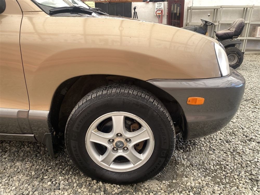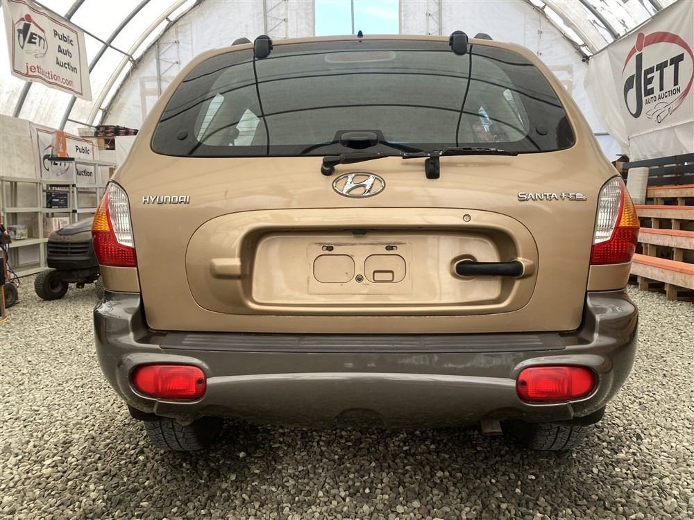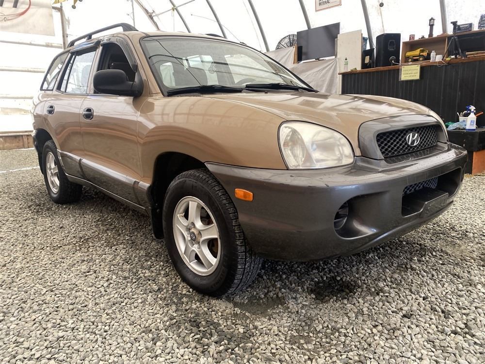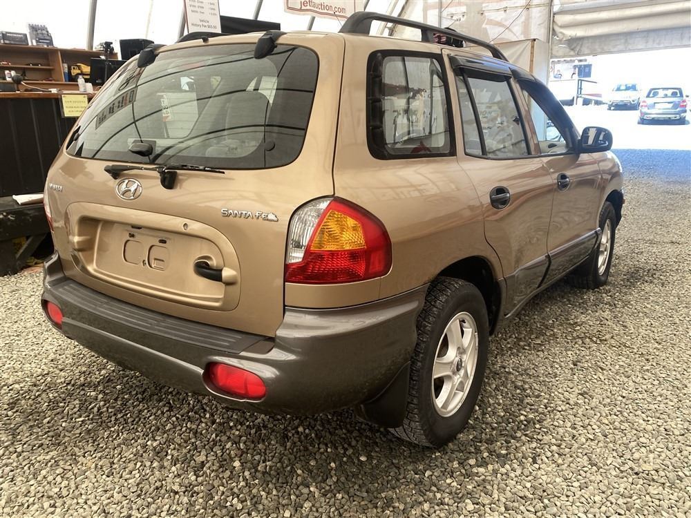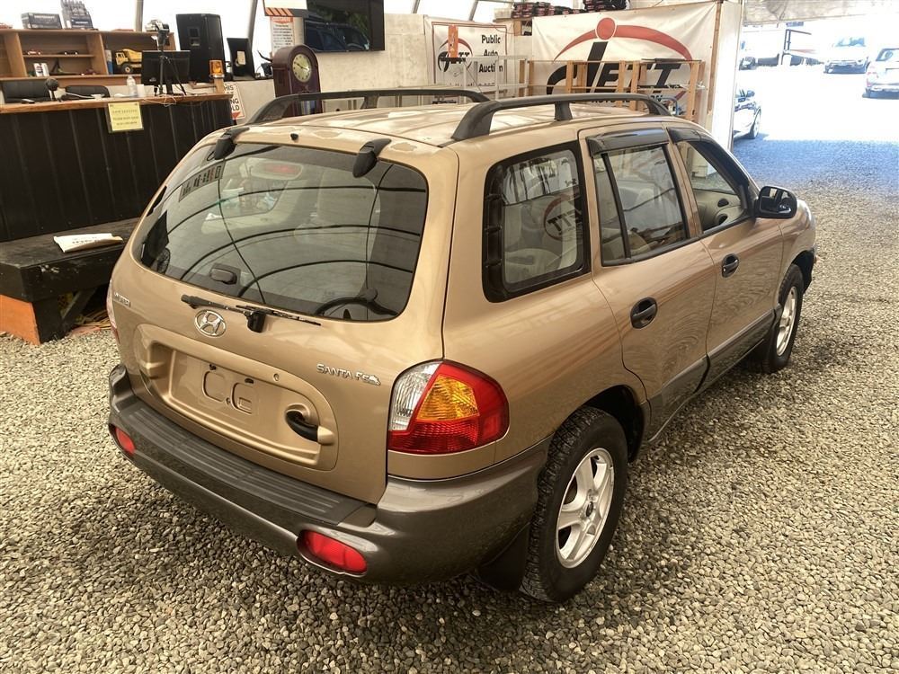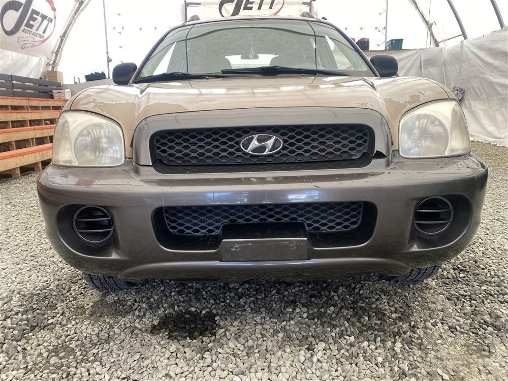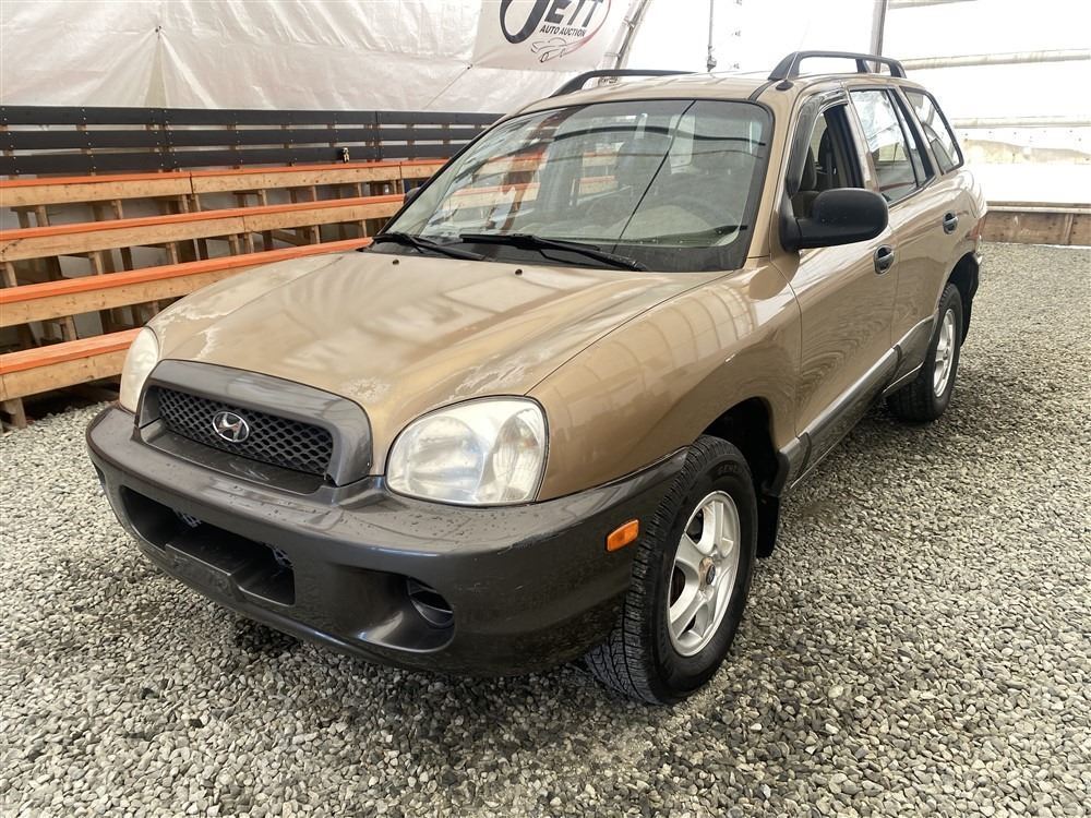 "2002 HYUNDAI SANTA FE GL, GOLD, 213088 KMS, 2.4L, 4 CYLINDER, GASOLINE, MANUAL, TRANSMISSION, FRONT WHEEL DRIVE, 5 PASSENGER. DECLARATIONS:1 ACCIDENTS, 0 GLASS CLAIM, TOTALING $638.POWER WINDOWS, TILT STEERING, ALLOY WHEELS, ANTI THEFT, DUAL AIR BAGS, CD PLAYER, AFTERMARKET STEREO, ROOF RACK, POWER MIRRORS, SPLIT-FOLDING REAR SEATS, AUCTION NOTES: NOT SUITABLE FOR TRANSPORTATION, MUST TOW