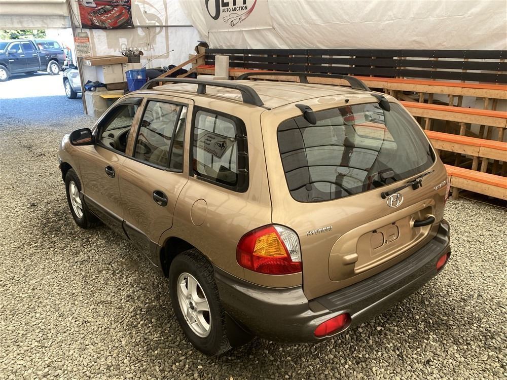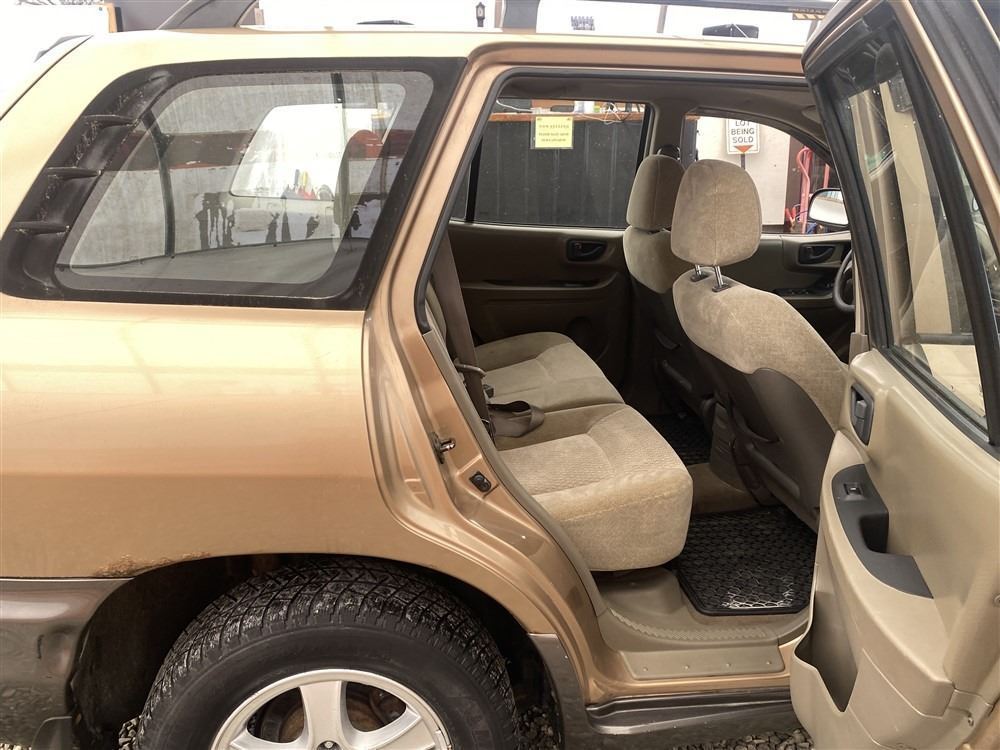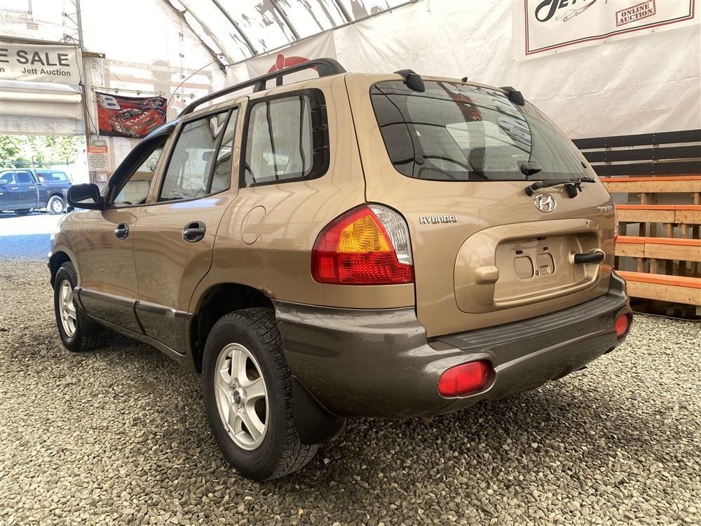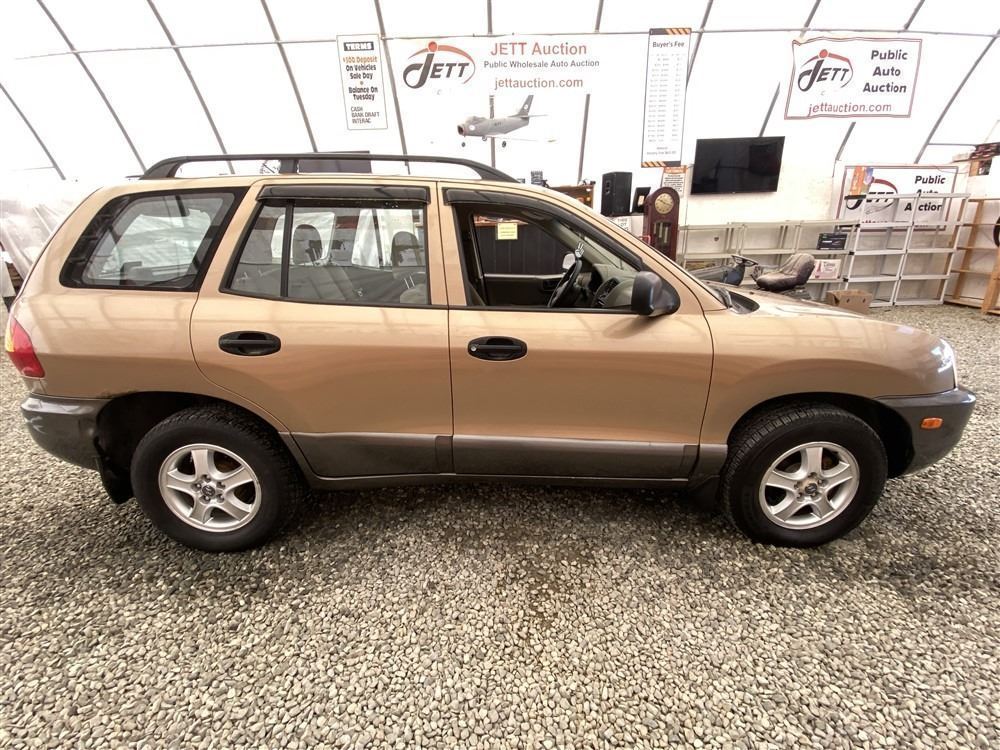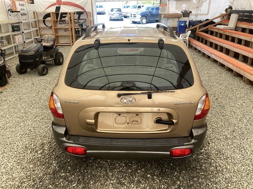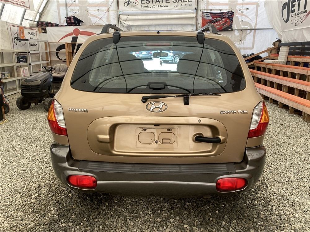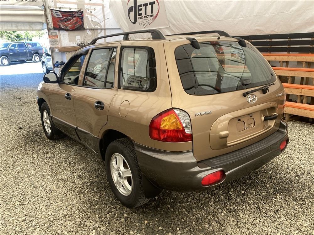 "2002 HYUNDAI SANTA FE GL, GOLD, 213088 KMS, 2.4L, 4 CYLINDER, GASOLINE, MANUAL, TRANSMISSION, FRONT WHEEL DRIVE, 5 PASSENGER. DECLARATIONS:1 ACCIDENTS, 0 GLASS CLAIM, TOTALING $638.POWER WINDOWS, TILT STEERING, ALLOY WHEELS, ANTI THEFT, DUAL AIR BAGS, CD PLAYER, AFTERMARKET STEREO, ROOF RACK, POWER MIRRORS, SPLIT-FOLDING REAR SEATS, AUCTION NOTES: NOT SUITABLE FOR TRANSPORTATION, MUST TOW