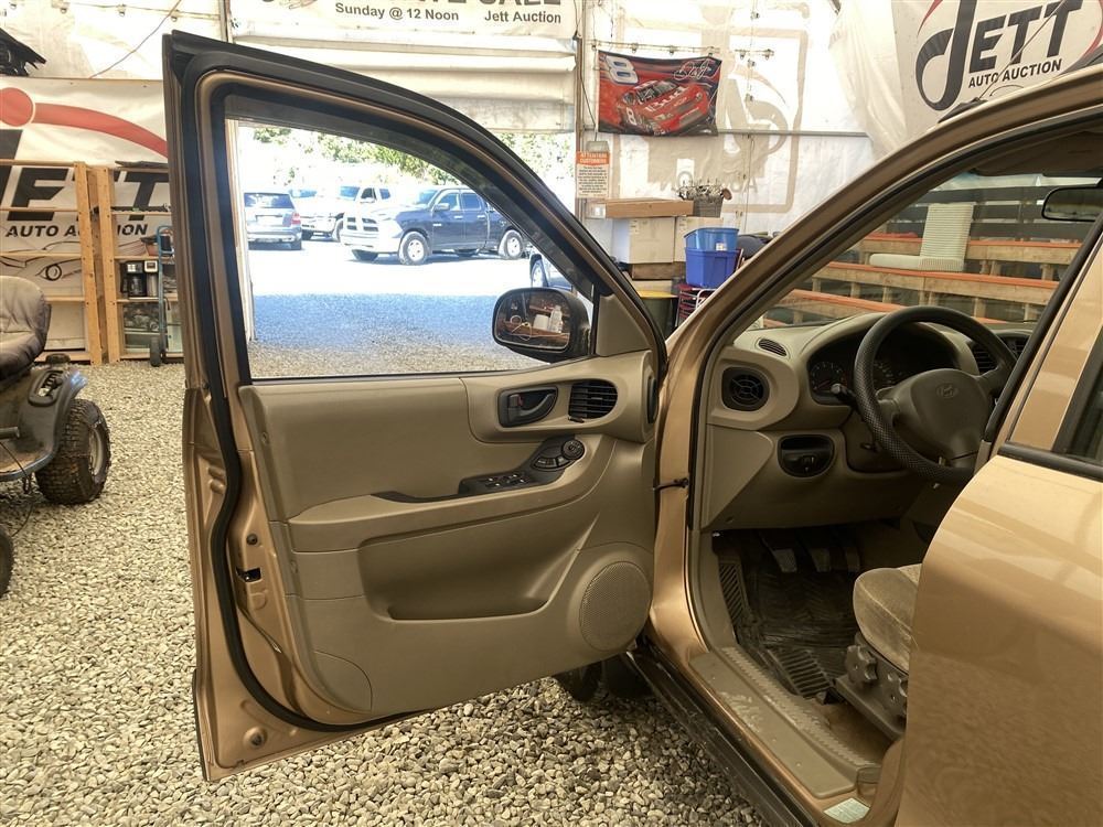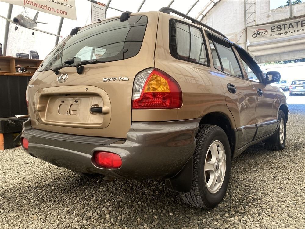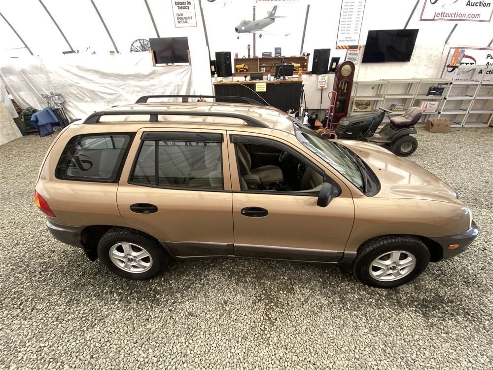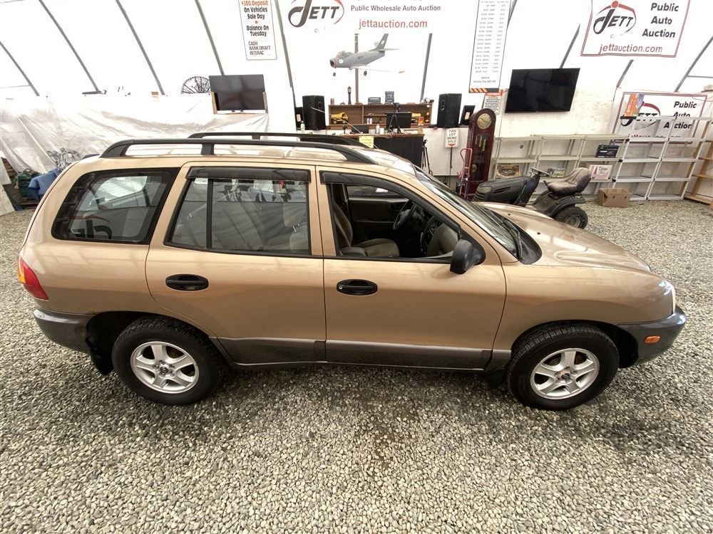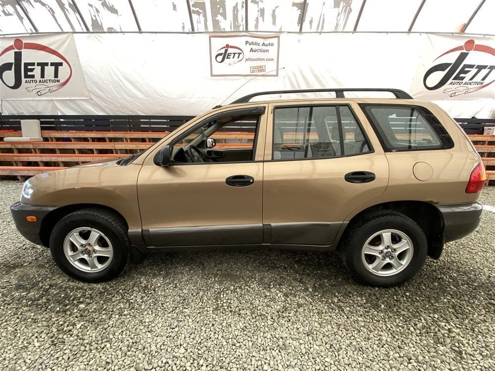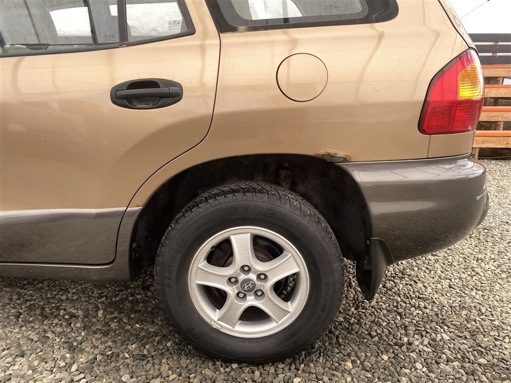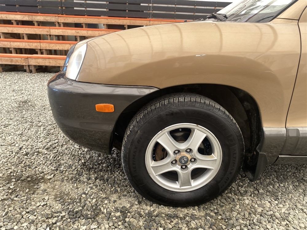 "2002 HYUNDAI SANTA FE GL, GOLD, 213088 KMS, 2.4L, 4 CYLINDER, GASOLINE, MANUAL, TRANSMISSION, FRONT WHEEL DRIVE, 5 PASSENGER. DECLARATIONS:1 ACCIDENTS, 0 GLASS CLAIM, TOTALING $638.POWER WINDOWS, TILT STEERING, ALLOY WHEELS, ANTI THEFT, DUAL AIR BAGS, CD PLAYER, AFTERMARKET STEREO, ROOF RACK, POWER MIRRORS, SPLIT-FOLDING REAR SEATS, AUCTION NOTES: NOT SUITABLE FOR TRANSPORTATION, MUST TOW