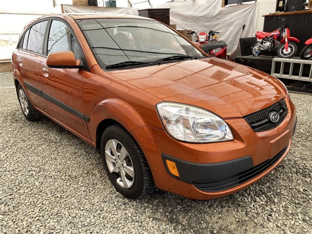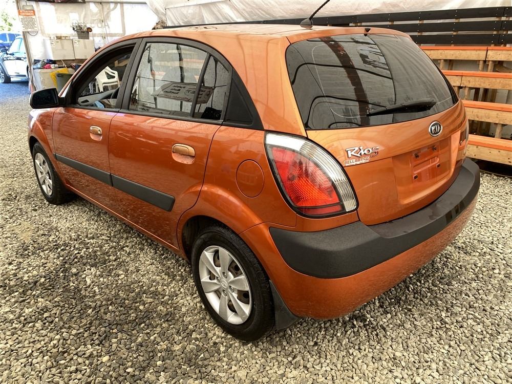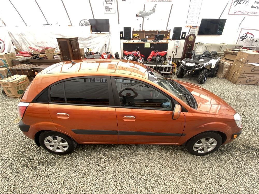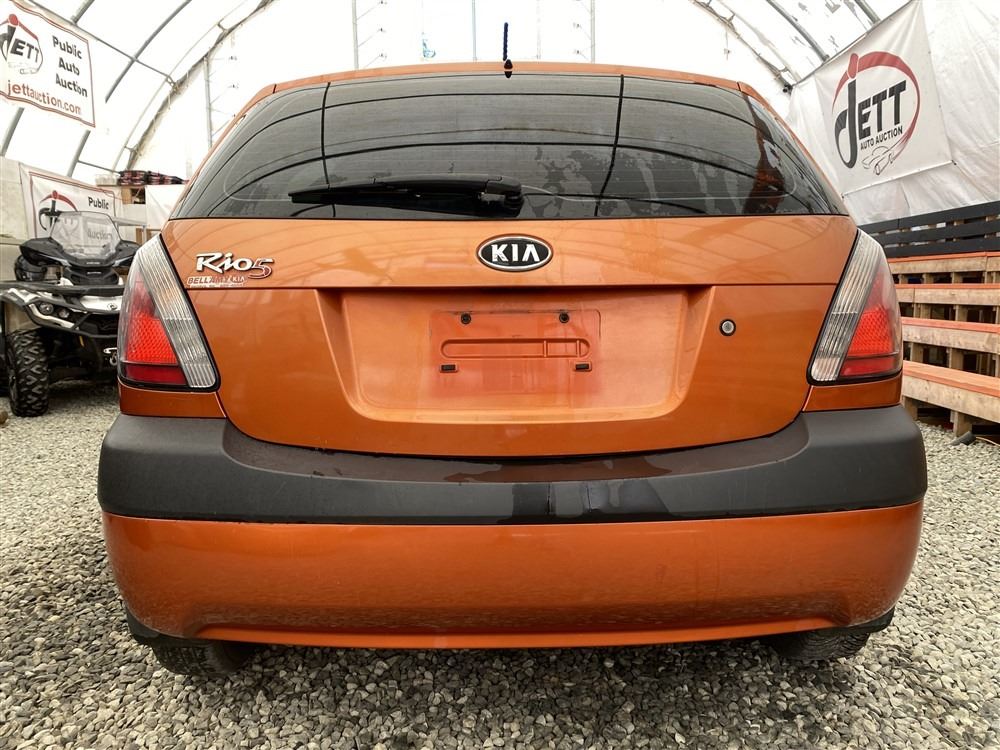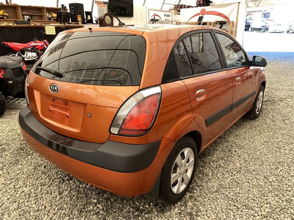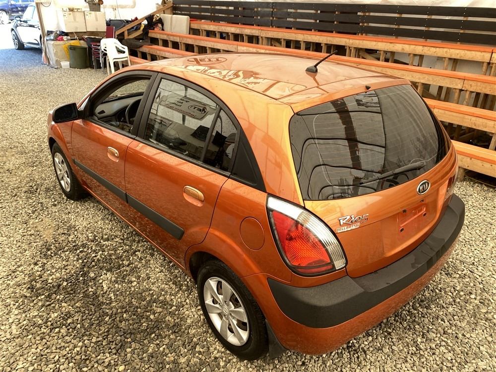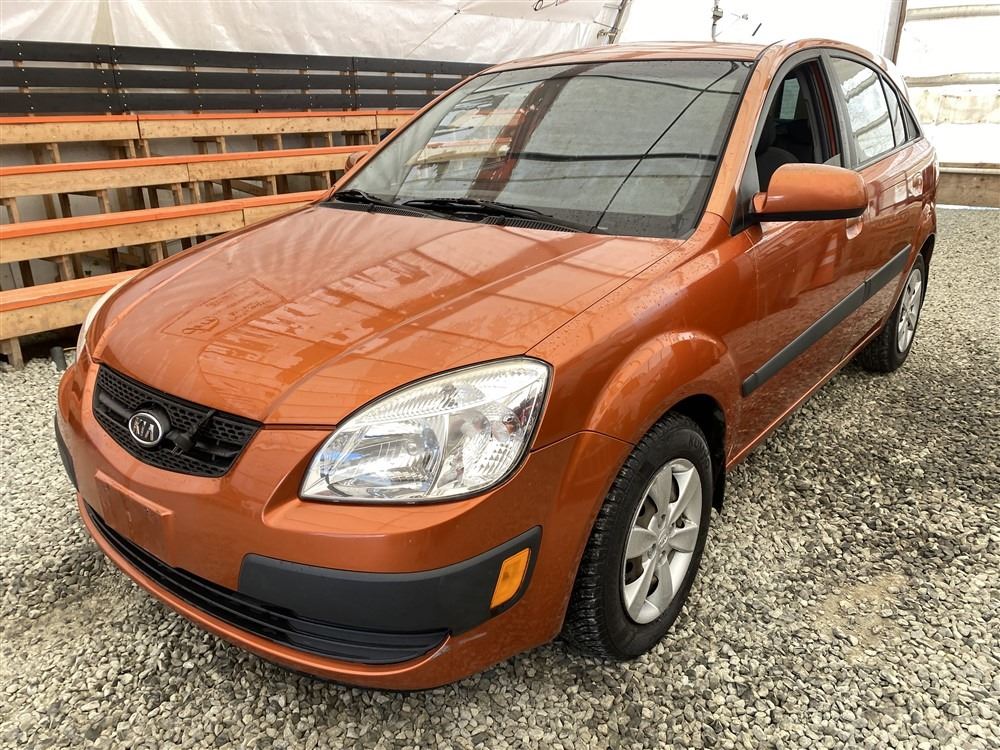 2008 KIA RIO 5 SX, ORANGE, 207780 KMS, 1.6L, 4 CYLINDER, GASOLINE, MANUAL, TRANSMISSION, FRONT WHEEL DRIVE, 5 PASSENGER. AIR CONDITIONING, POWER WINDOWS, POWER LOCKS, KEY-LESS ENTRY, TILT STEERING, CRUISE CONTROL, DUAL AIR BAGS, CD PLAYER, AFTERMARKET STEREO, HEATED SEATS, POWER MIRRORS, SPLIT-FOLDING REAR SEATS. DECLARATIONS: EX-OUT OF PROVINCE.4 ACCIDENTS 0 GLASS CLAIM, TOTALING $7607. GOOD SERVICE HISTORY, CARFAX SHOWING 25 RECORDS.