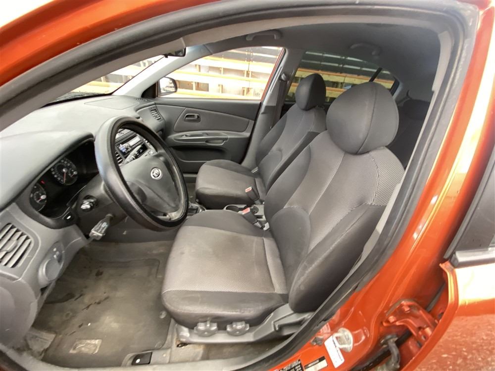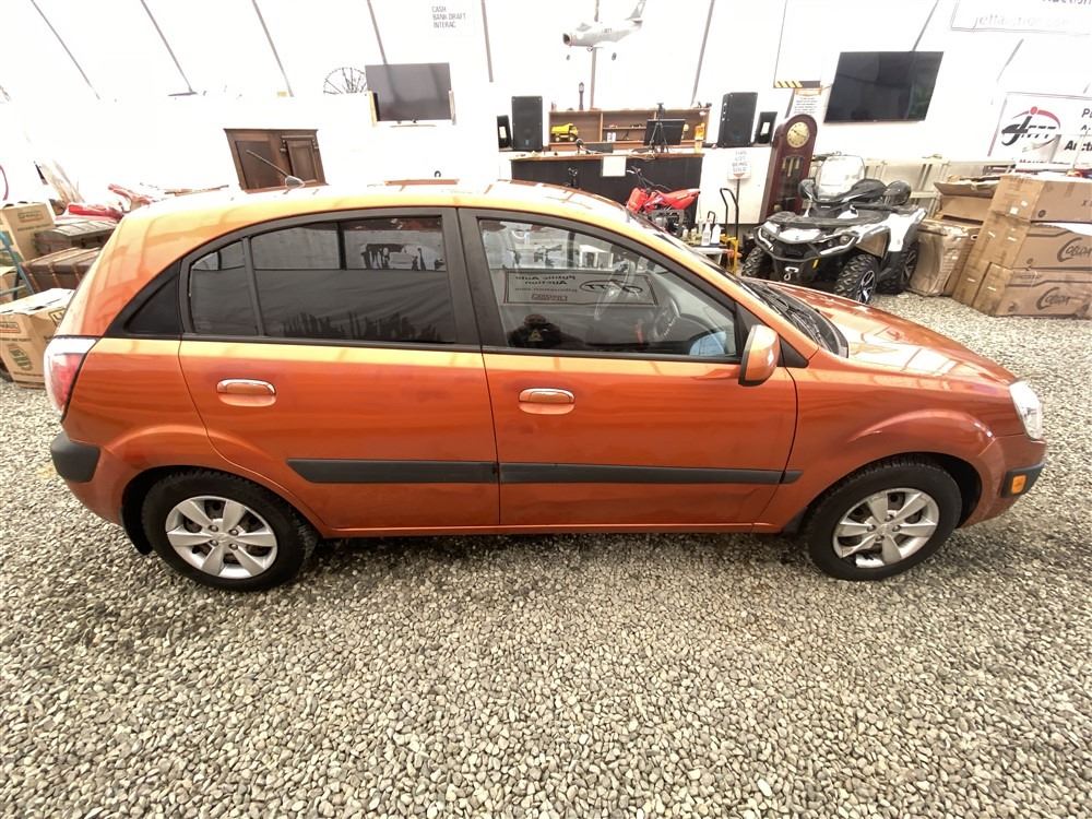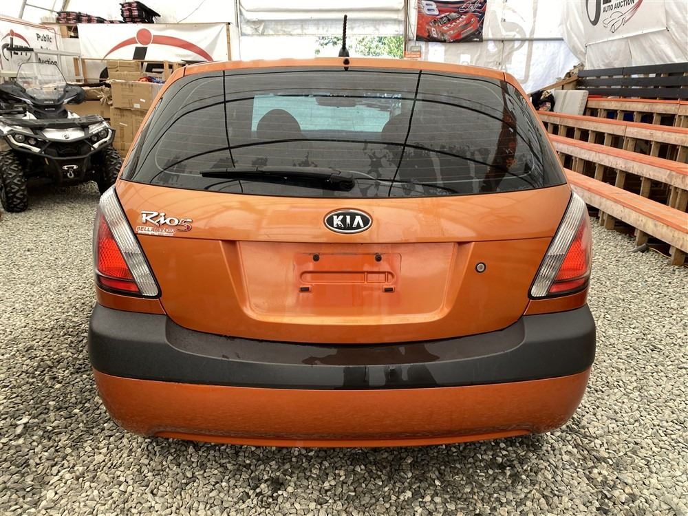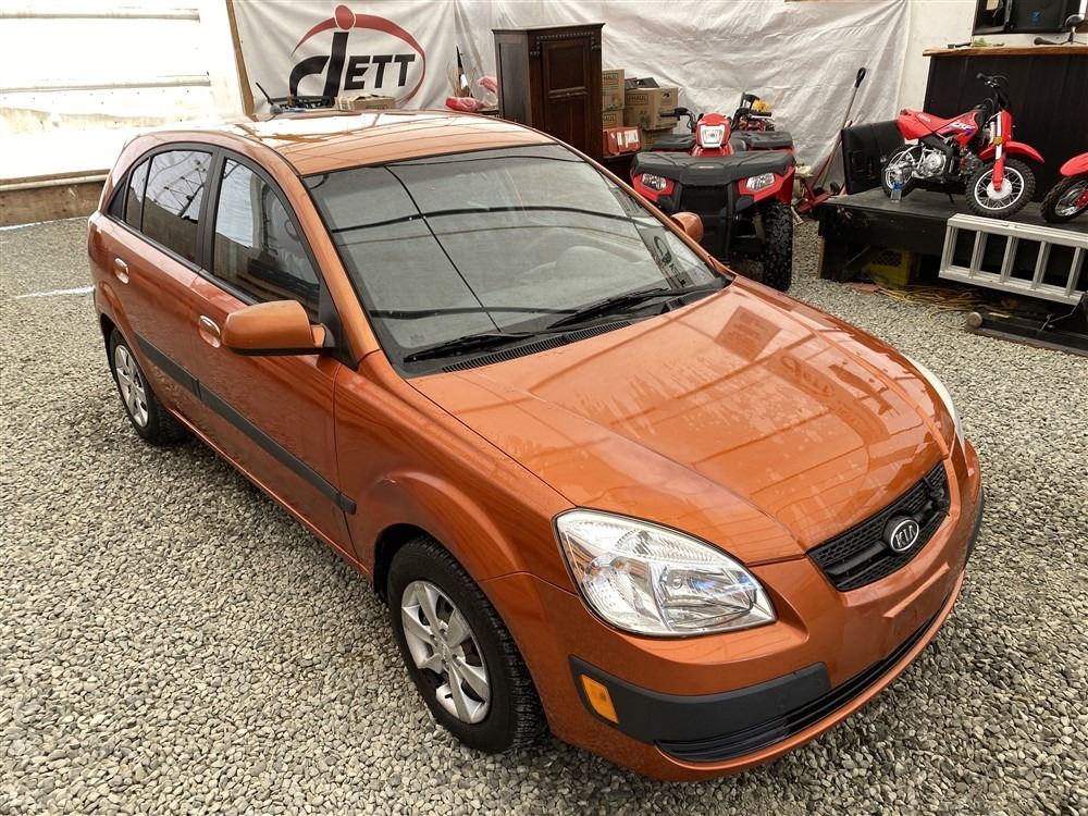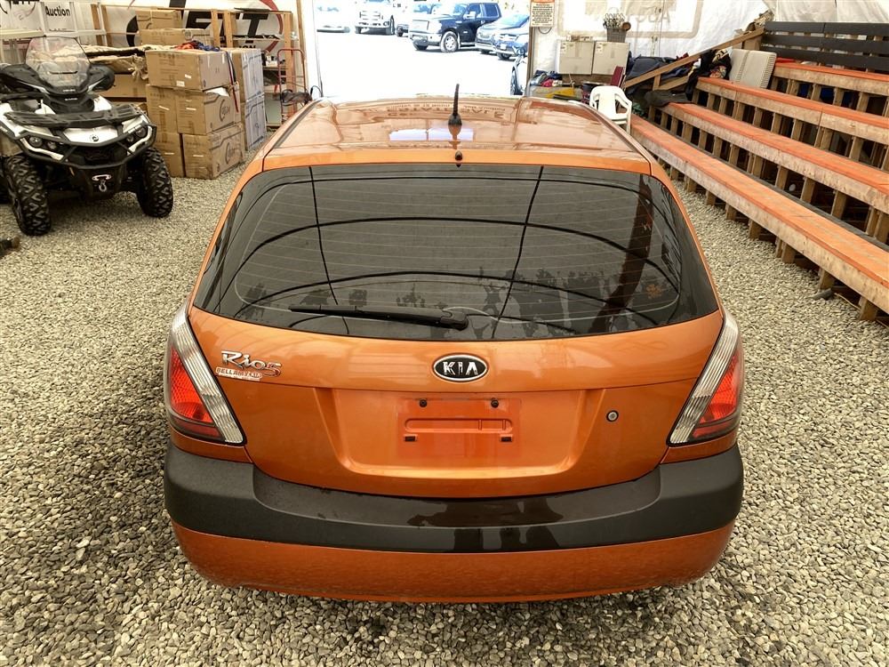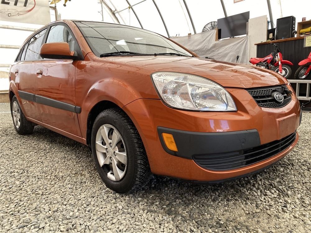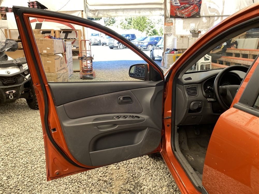 2008 KIA RIO 5 SX, ORANGE, 207780 KMS, 1.6L, 4 CYLINDER, GASOLINE, MANUAL, TRANSMISSION, FRONT WHEEL DRIVE, 5 PASSENGER. AIR CONDITIONING, POWER WINDOWS, POWER LOCKS, KEY-LESS ENTRY, TILT STEERING, CRUISE CONTROL, DUAL AIR BAGS, CD PLAYER, AFTERMARKET STEREO, HEATED SEATS, POWER MIRRORS, SPLIT-FOLDING REAR SEATS. DECLARATIONS: EX-OUT OF PROVINCE.4 ACCIDENTS 0 GLASS CLAIM, TOTALING $7607. GOOD SERVICE HISTORY, CARFAX SHOWING 25 RECORDS.