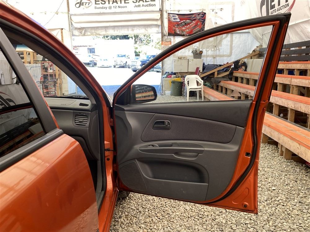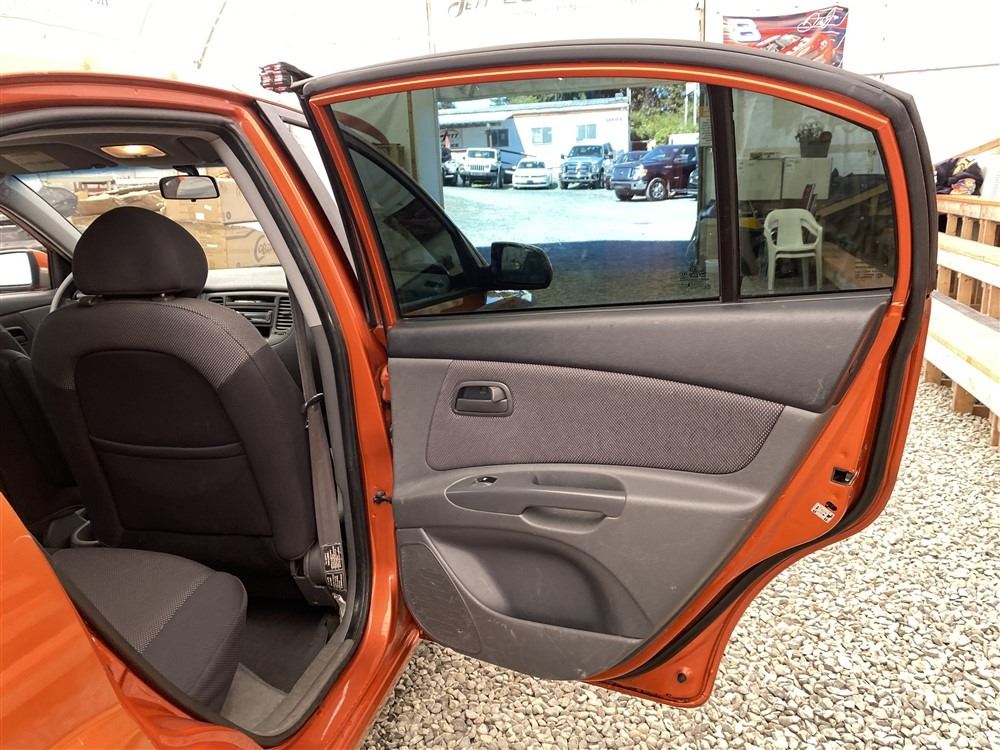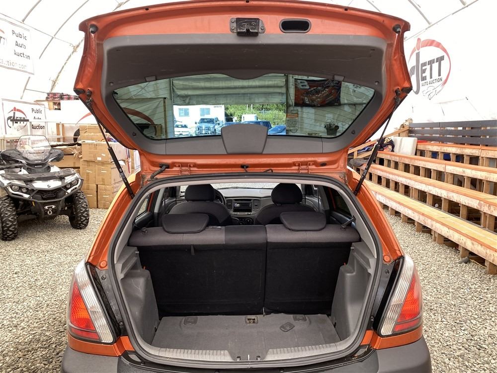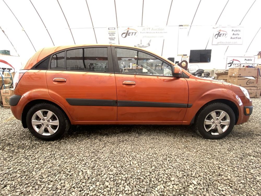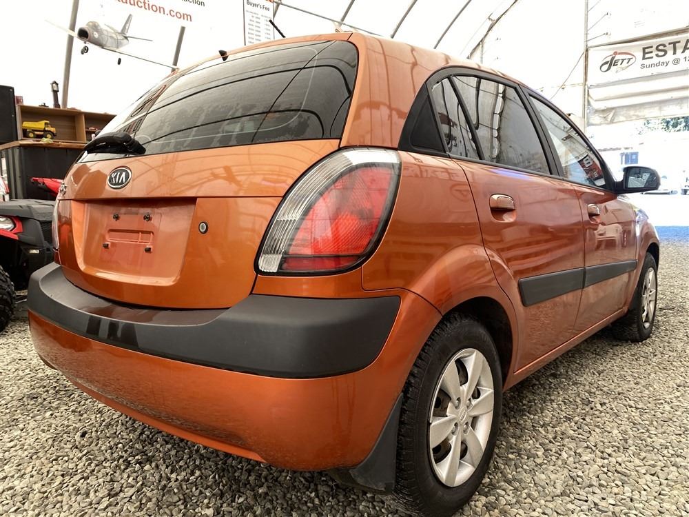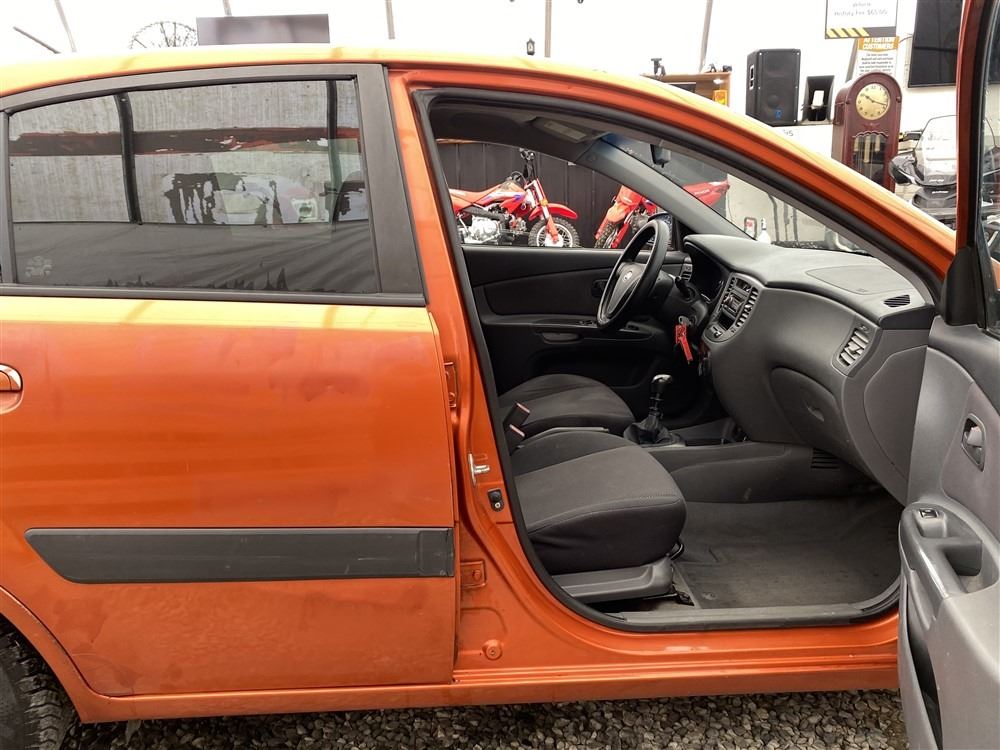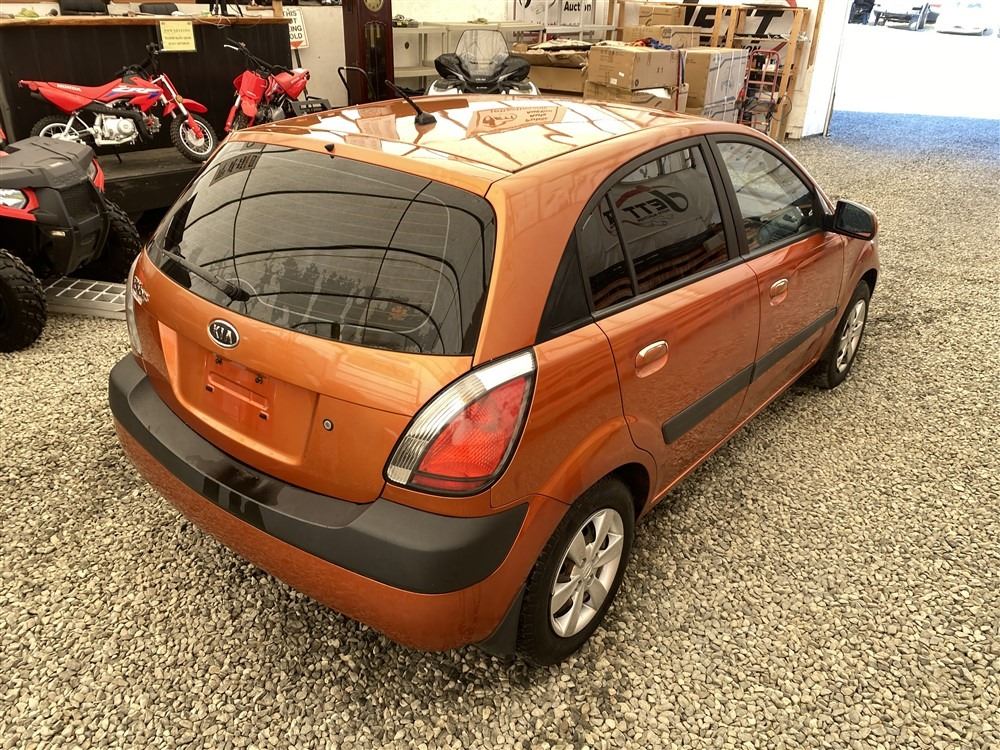 2008 KIA RIO 5 SX, ORANGE, 207780 KMS, 1.6L, 4 CYLINDER, GASOLINE, MANUAL, TRANSMISSION, FRONT WHEEL DRIVE, 5 PASSENGER. AIR CONDITIONING, POWER WINDOWS, POWER LOCKS, KEY-LESS ENTRY, TILT STEERING, CRUISE CONTROL, DUAL AIR BAGS, CD PLAYER, AFTERMARKET STEREO, HEATED SEATS, POWER MIRRORS, SPLIT-FOLDING REAR SEATS. DECLARATIONS: EX-OUT OF PROVINCE.4 ACCIDENTS 0 GLASS CLAIM, TOTALING $7607. GOOD SERVICE HISTORY, CARFAX SHOWING 25 RECORDS.