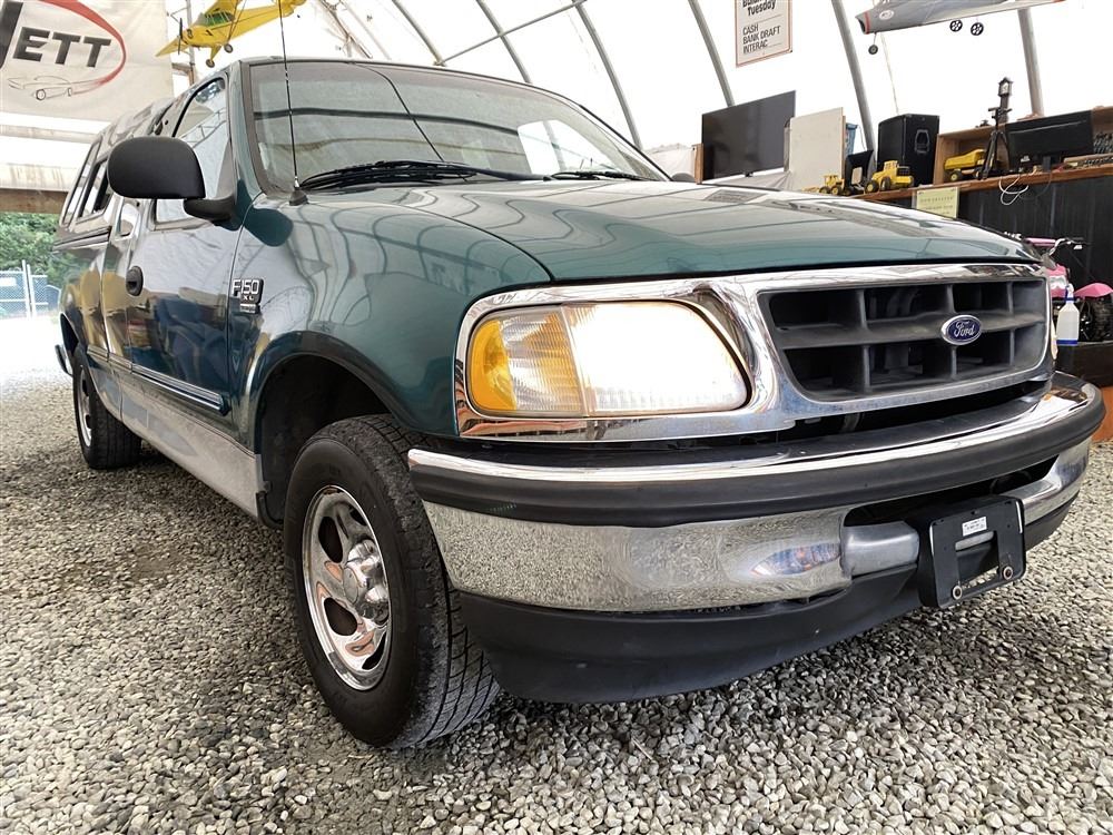 1998 FORD F150, GREEN, 336035 KMS, 4.6L, V8 CYLINDER, GASOLINE, AUTOMATIC, TRANSMISSION, REAR WHEEL DRIVE, 6 PASSENGER. AIR CONDITIONING, TILT STEERING, CRUISE CONTROL, DUAL AIR BAGS, CD PLAYER, AFTERMARKET STEREO, CANOPY, BOX LINER, REGULAR BOX, . DECLARATIONS: EX-OUT OF PROVINCE NOT MECHANICALLY INSPECTED, NOT SUITABLE FOR TRANSPORTATION. MUST TOW.1 ACCIDENTS 0 GLASS CLAIM, TOTALING $1234. SERVICE HISTORY SHOWS9 RECORDS.