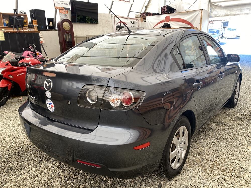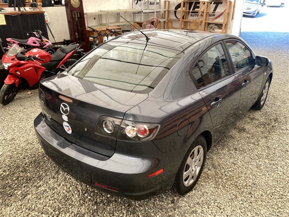 2008 MAZDA 3, GREY, 193246 KMS, 2.0L, 4 CYLINDER, GASOLINE, AUTOMATIC WITH TIPTRONIC, TRANSMISSION, FRONT WHEEL DRIVE, 5 PASSENGER. AIR CONDITIONING, POWER LOCKS, KEY-LESS ENTRY, TILT STEERING, CRUISE CONTROL, ANTI THEFT, DUAL AIR BAGS, CD PLAYER, TRACTION CONTROL, POWER MIRRORS, SPLIT-FOLDING REAR SEATS. DECLARATIONS: NO DECLARATIONS NOT MECHANICALLY INSPECTED, NOT SUITABLE FOR TRANSPORTATION. MUST TOW.1 ACCIDENTS 0 GLASS CLAIM, TOTALING $0. SERVICE HISTORY SHOWS12 RECORDS.