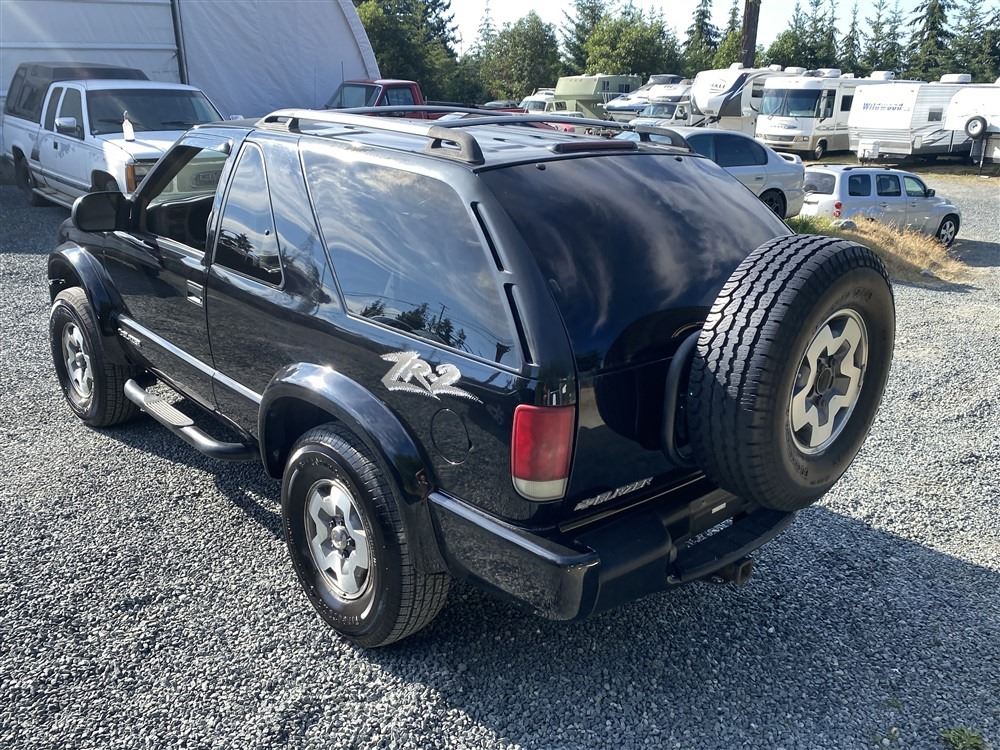 2005 CHEVROLET BLAZER ZR2, BLACK, 299228 KMS, 4.3L, 6 CYLINDER, GASOLINE, AUTOMATIC, TRANSMISSION, 4X4, 4 PASSENGER. AIR CONDITIONING, POWER WINDOWS, POWER LOCKS, KEY-LESS ENTRY, TILT STEERING, CRUISE CONTROL, ALLOY WHEELS, ANTI THEFT, DUAL AIR BAGS, CD STACKER, STEERING WHEEL CONTROLS, ROOF RACK, TOW PACKAGE, POWER MIRRORS, SPLIT-FOLDING REAR SEATS. DECLARATIONS: EX-OUT OF PROVINCE ABS LIGHT ON, NOT MECHANICALLY INSPECTED, NOT SUITABLE FOR TRANSPORTATION. MUST TOW.0 ACCIDENTS 1 GLASS CLAIM, TOTALING $589. SERVICE HISTORY SHOWS19 RECORDS.