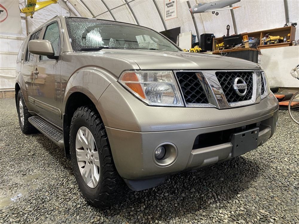 2005 NISSAN PATHFINDER LE, BROWN, 256704 KMS, 4L, 6 CYLINDER, FUEL_TYPE, AUTOMATIC, TRANSMISSION, 4X4, PASSENGER. AIR CONDITIONING, POWER WINDOWS, POWER LOCKS, KEY-LESS ENTRY, TILT STEERING, CRUISE CONTROL, ALLOY WHEELS, ANTI THEFT, DUAL AIR BAGS, POWER SUNROOF, CD PLAYER, CD STACKER, LEATHER SEATS, POWER SEATS, HEATED SEATS, HEATED MIRRORS, REAR HEAT AND AIR, STEERING WHEEL CONTROLS, POWER ADJUSTABLE PEDALS, FOG LIGHTS, ROOF RACK, POWER MIRRORS, SPLIT-FOLDING REAR SEATS. DECLARATIONS: EX-LEASE NOT MECHANICALLY INSPECTED, NOT SUITABLE FOR TRANSPORTATION. MUST TOW.5 ACCIDENTS 1 GLASS CLAIM, TOTALING $10304. SERVICE HISTORY SHOWS6 RECORDS.