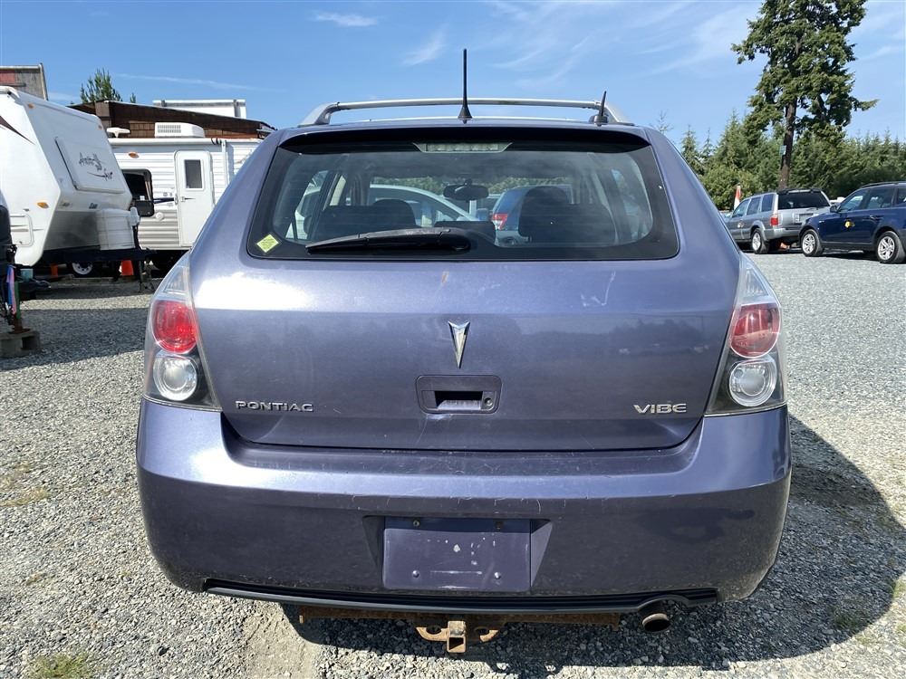 2009 PONTIAC VIBE, BLUE, 311168 KMS, 1.8L, 4 CYLINDER, GAS, MANUAL, TRANSMISSION, FRONT WHEEL DRIVE, 5 PASSENGER. TILT STEERING, CD PLAYER, TRACTION CONTROL, POWER MIRRORS, . DECLARATIONS: NOT MECHANICALLY INSPECTED, NOT SUITABLE FOR TRANSPORTATION. MUST TOW.1 ACCIDENTS 0 GLASS CLAIM, TOTALING $4150. SERVICE HISTORY SHOWS5 RECORDS.