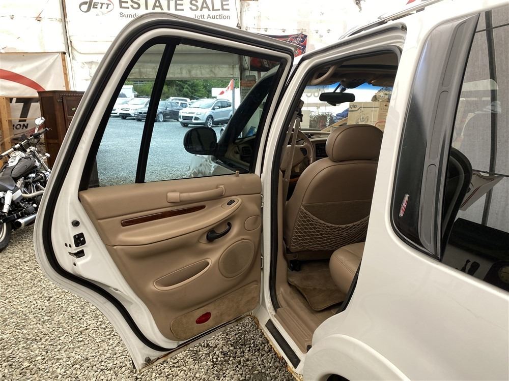 1998 LINCOLN NAVIGATOR, WHITE, 358956 KMS, 5.4L, 8 CYLINDER, GASOLINE, AUTOMATIC, TRANSMISSION, 4X4, 7 PASSENGER. AIR CONDITIONING, POWER WINDOWS, POWER LOCKS, TILT STEERING, CRUISE CONTROL, ALLOY WHEELS, ANTI THEFT, DUAL AIR BAGS, POWER SUNROOF, CD PLAYER, CD STACKER, LEATHER SEATS, POWER SEATS, HEATED SEATS, HEATED MIRRORS, STEERING WHEEL CONTROLS, FOG LIGHTS, ROOF RACK, TOW PACKAGE, POWER MIRRORS, NO REPORTED ACCIDENTS., SPLIT-FOLDING REAR SEATS. DECLARATIONS: EX-OUT OF PROVINCE, NOT MECHANICALLY INSPECTED, NOT SUITABLE FOR TRANSPORTATION. MUST TOW.0 ACCIDENTS 0 GLASS CLAIM, TOTALING $0. SERVICE HISTORY SHOWS7 RECORDS.