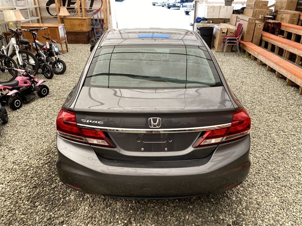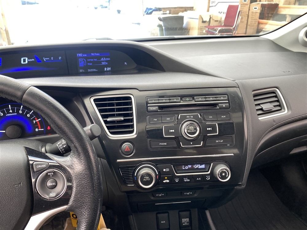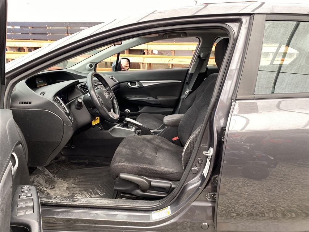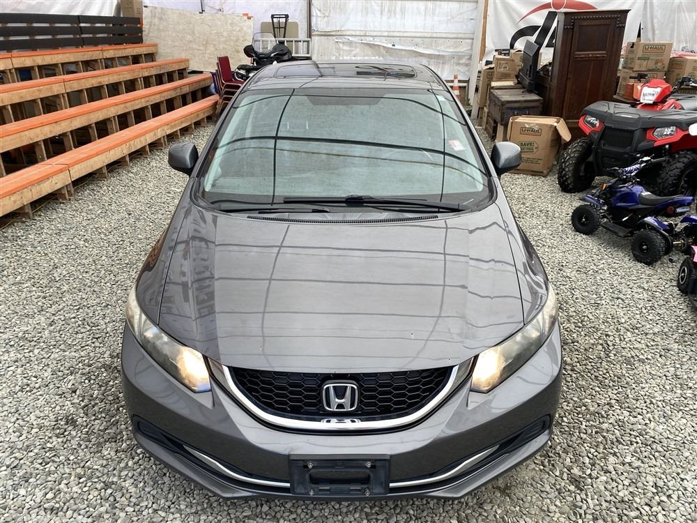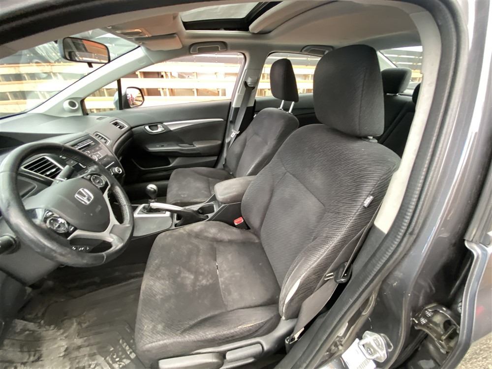 2013 HONDA CIVIC, GREY, 262598 KMS, 1.8L, 4 CYLINDER, GASOLINE, MANUAL, TRANSMISSION, FRONT WHEEL DRIVE, 5 PASSENGER. AIR CONDITIONING, POWER WINDOWS, POWER LOCKS, KEY-LESS ENTRY, TILT STEERING, CRUISE CONTROL, ALLOY WHEELS, ANTI THEFT, DUAL AIR BAGS, POWER SUNROOF, CD PLAYER, BLUETOOTH, HEATED SEATS, HEATED MIRRORS, INFOTAINMENT CENTER, BACK UP CAMERA, TRACTION CONTROL, STEERING WHEEL CONTROLS, POWER MIRRORS, SPLIT-FOLDING REAR SEATS. DECLARATIONS: EX-OUT OF PROVINCE NOT MECHANICALLY INSPECTED, NOT SUITABLE FOR TRANSPORTATION. MUST TOW.1 ACCIDENTS 0 GLASS CLAIM, TOTALING $836. GOOD SERVICE HISTORY, CARFAX SHOWING 11 RECORDS.
