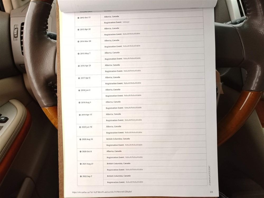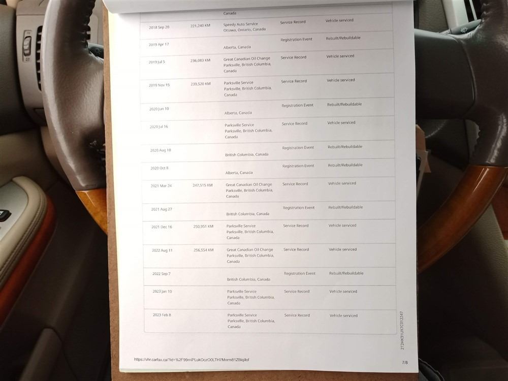 Automatic transmission and 3.5 Litre Engine, 6 cylinder , All Wheel Drive, 264108 KilometersBlue, 5 PassengerDeclarations -Previous Out of Province, MB, AB , Currently BC Registered, Rebuild, Power Steering, Power Brakes, , Intermittent Wipers, Dual Air Bag, AM/FM Stereo , Rear Defroster, Bucket Seats, Anti Lock Brakes, Front Disc Brakes-Air Conditioning, Power Windows, Power Locks, Keyless Entry, Tilt Steering, Cruise Control, Alloy Wheels, Anti Theft, Power Sunroof, CD Player, Aftermarket Stereo, Leather Seats, Power Seats, Heated Seats, Memory Seats, Heated Mirrors, Information Center, Traction Control, Steering Wheel Controls, Fog Lights, Roof Rack, Spare Key, Auction Notes : Power Mirrors, , Spare Key, Intermittent Start, Was Driven Here. Won't Start Now, Possible Fuel Pump Issue, No Returns