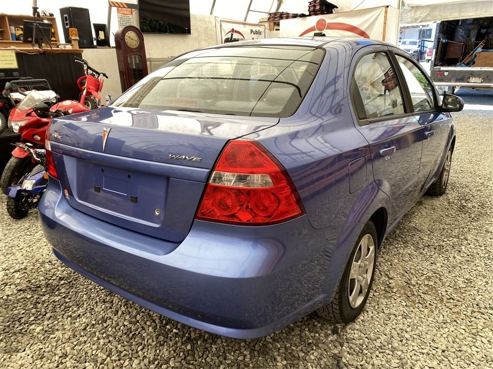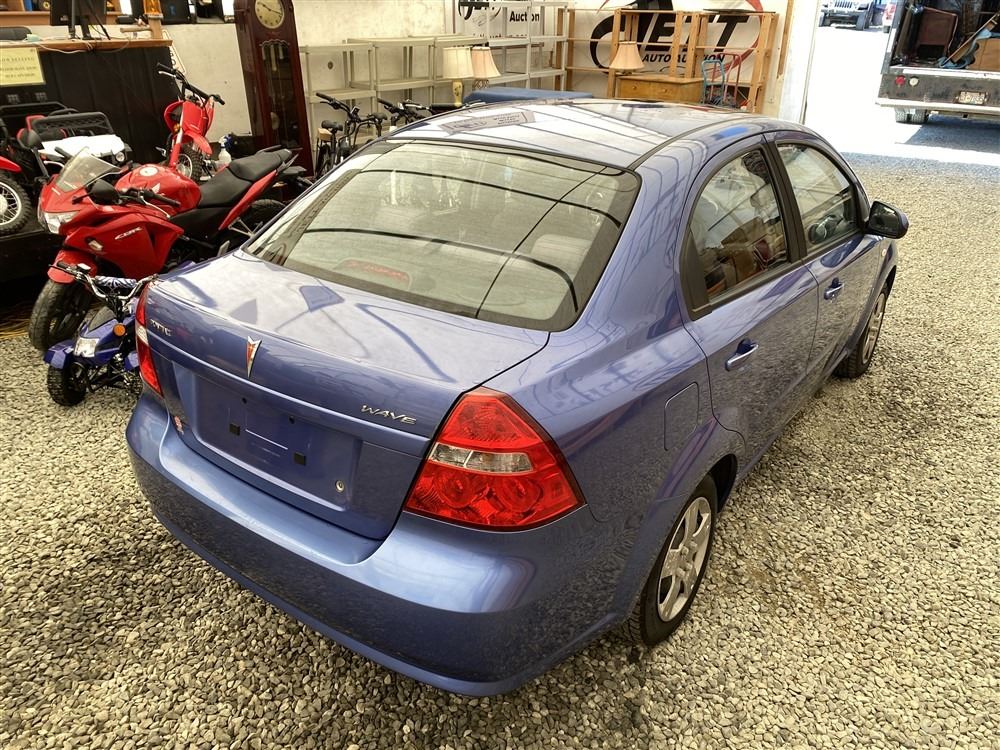 2008 PONTIAC WAVE, BLUE, 86898 KMS, 1.6L, 4 CYLINDER, FUEL_TYPE, AUTOMATIC, TRANSMISSION, FRONT WHEEL DRIVE, 5 PASSENGER. AIR CONDITIONING, POWER WINDOWS, POWER LOCKS, KEY-LESS ENTRY, TILT STEERING, CRUISE CONTROL, ALLOY WHEELS, CD PLAYER, FOG LIGHTS, NO REPORTED ACCIDENTS., . DECLARATIONS: NO DECLARATIONS AIR BAG LIGHT ON - NOT MECHANICALLY INSPECTED, NOT SUITABLE FOR TRANSPORTATION. MUST TOW.0 ACCIDENTS 0 GLASS CLAIM, TOTALING $0. SERVICE HISTORY SHOWS2 RECORDS.