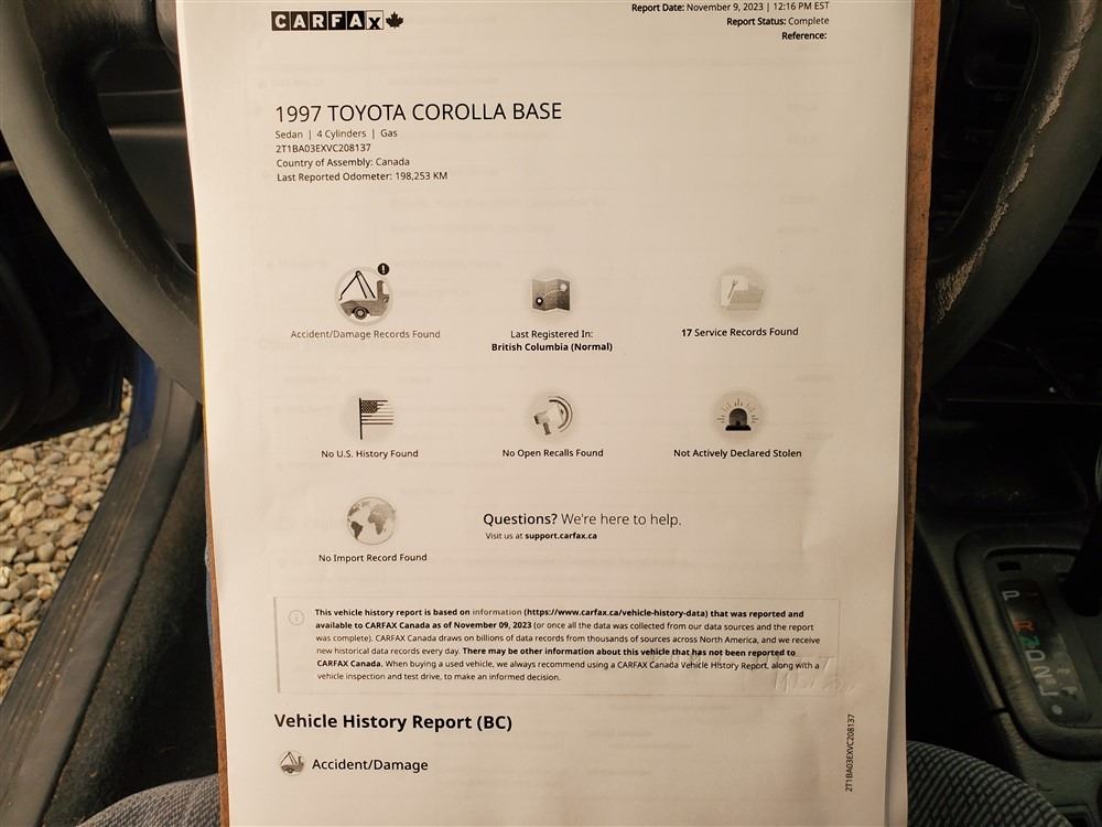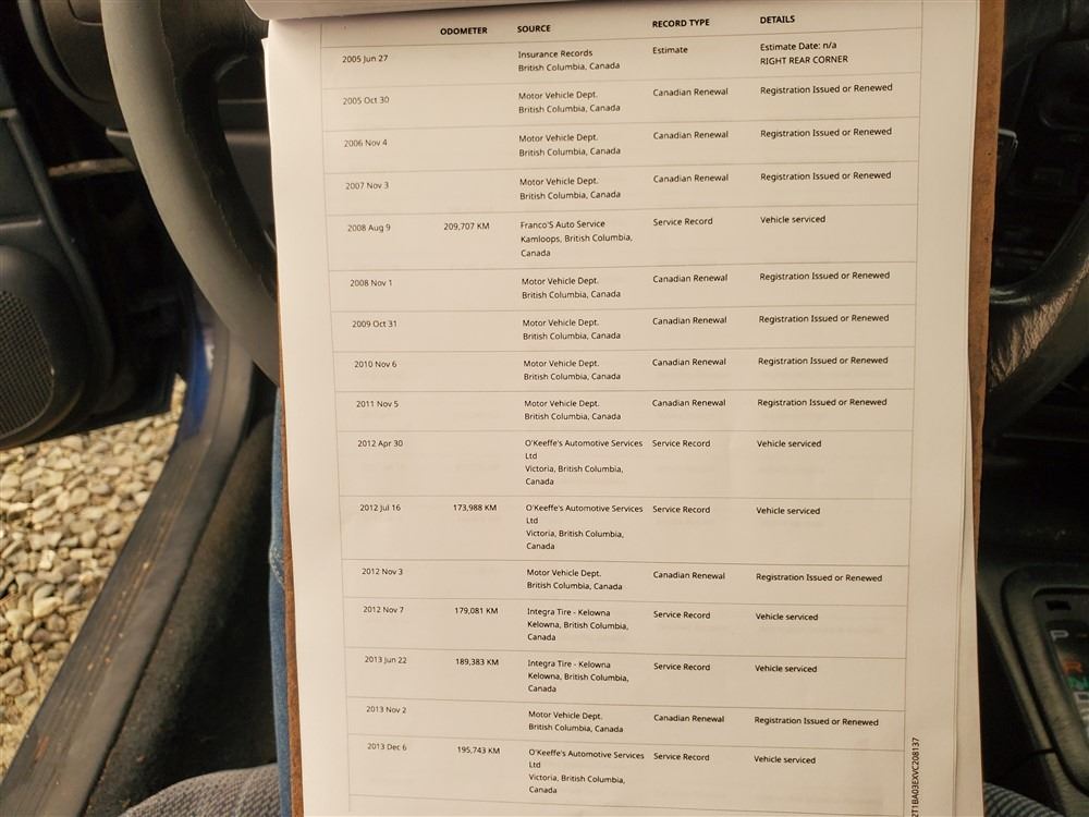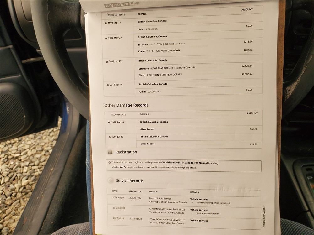 Automatic transmission and 1.8 Litre Engine, 4 Cylinder, Front Wheel Drive, 278018 KMBlue, 5 PassengerDeclarations - , Damage Claims, 4 CLAIMS + 2 GLASS TOTAL $2650 , Ex Lease,Power Steering, Power Brakes, Intermittent Wipers, Dual Air Bag, AM/FM Stereo , Rear Defroster, Bucket Seats, Anti Lock Brakes, Front Disc Brakes-Air Conditioning, Tilt Steering, Cruise Control, Anti Theft, CD Player, Chip / Crack in windshield Auction Notes : Not Mechanically Inspected, Not Suitable For Transportation, Must Tow