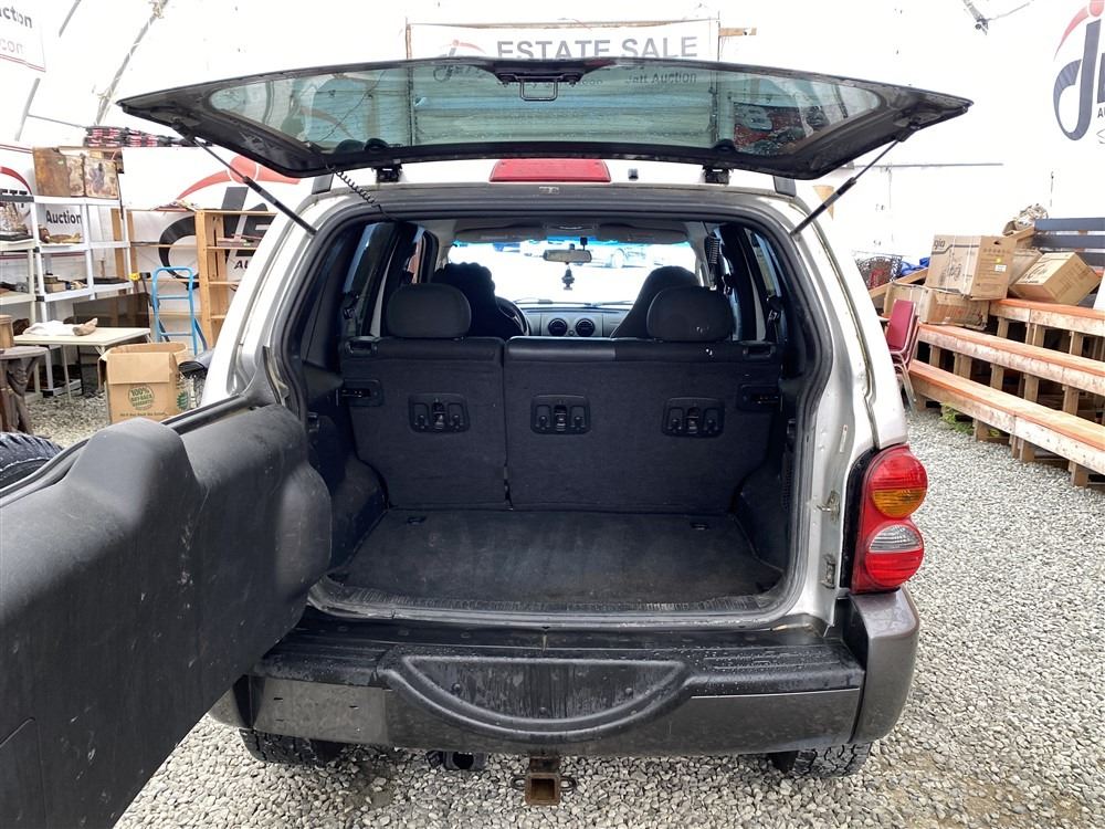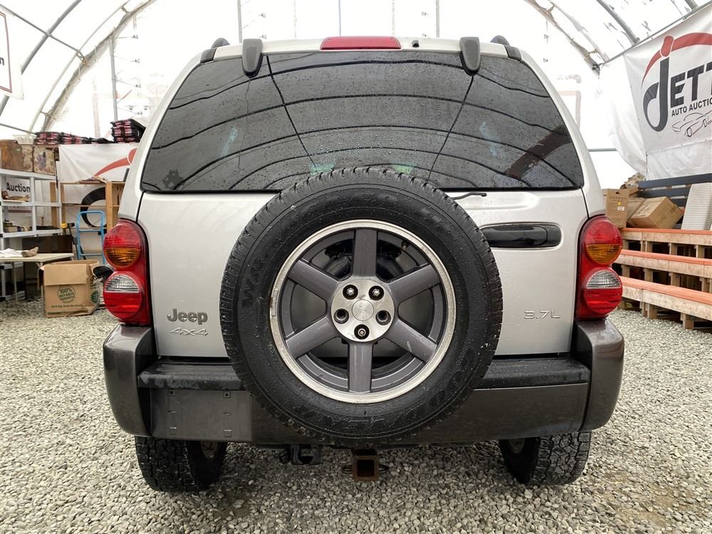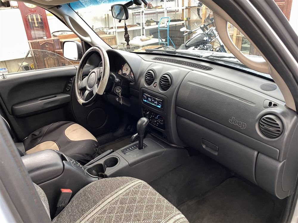 2003 JEEP LIBERTY, SILVER, 275988 KMS, 3.7L, 6 CYLINDER, GASOLINE, AUTOMATIC, TRANSMISSION, 4X4, 5 PASSENGER. AIR CONDITIONING, POWER WINDOWS, POWER LOCKS, KEY-LESS ENTRY, TILT STEERING, CRUISE CONTROL, ALLOY WHEELS, ANTI THEFT, DUAL AIR BAGS, CD PLAYER, BLUETOOTH, AFTERMARKET STEREO, SPLIT-FOLDING REAR SEATS. DECLARATIONS: EX-OUT OF PROVINCE NOT MECHANICALLY INSPECTED, NOT SUITABLE FOR TRANSPORTATION. MUST TOW.1 ACCIDENTS 1 GLASS CLAIM, TOTALING $2260. SERVICE HISTORY SHOWS7 RECORDS.