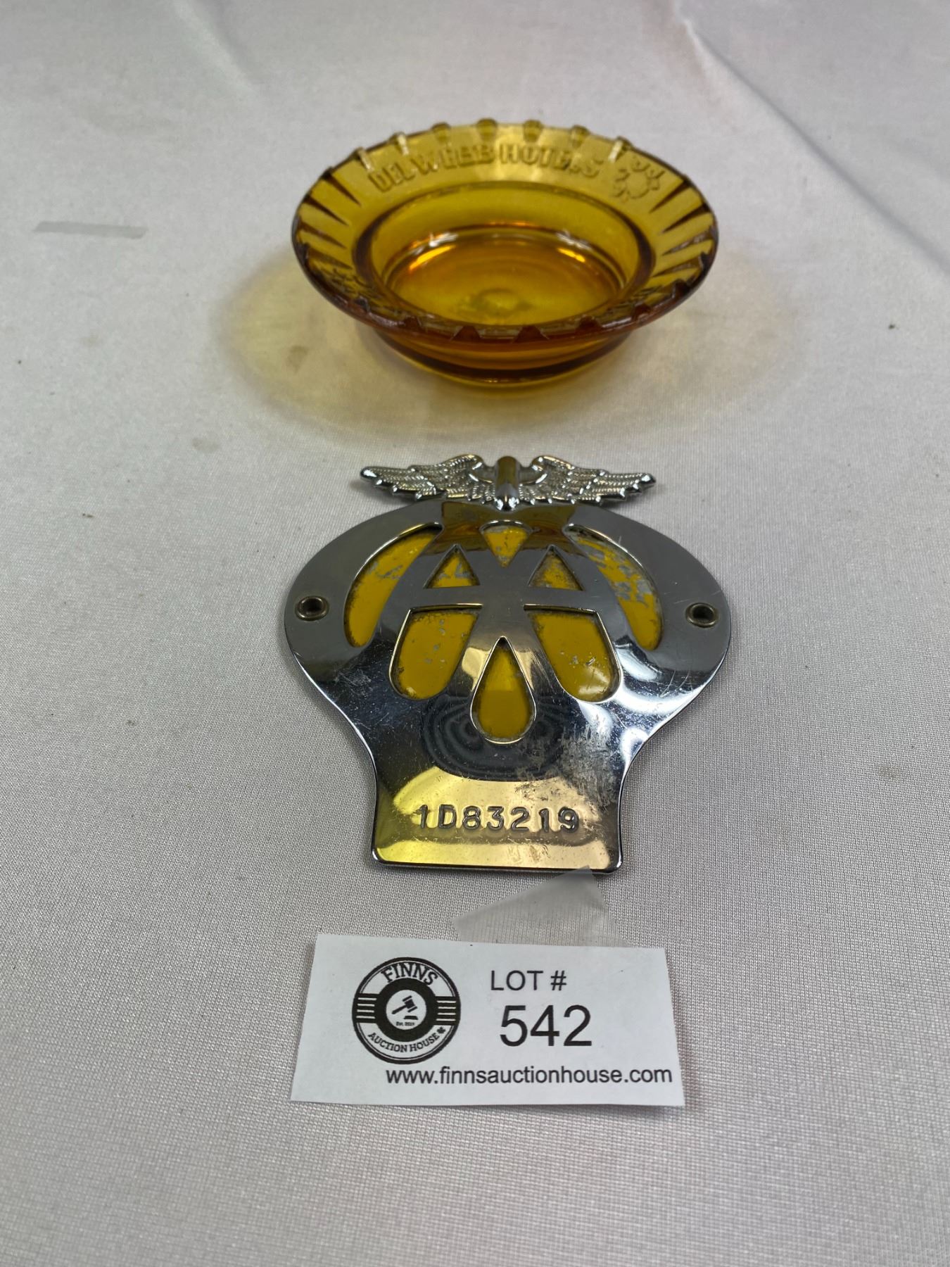 AA Automotive License Plate Topper with Delwebb Hotel Ash Tray