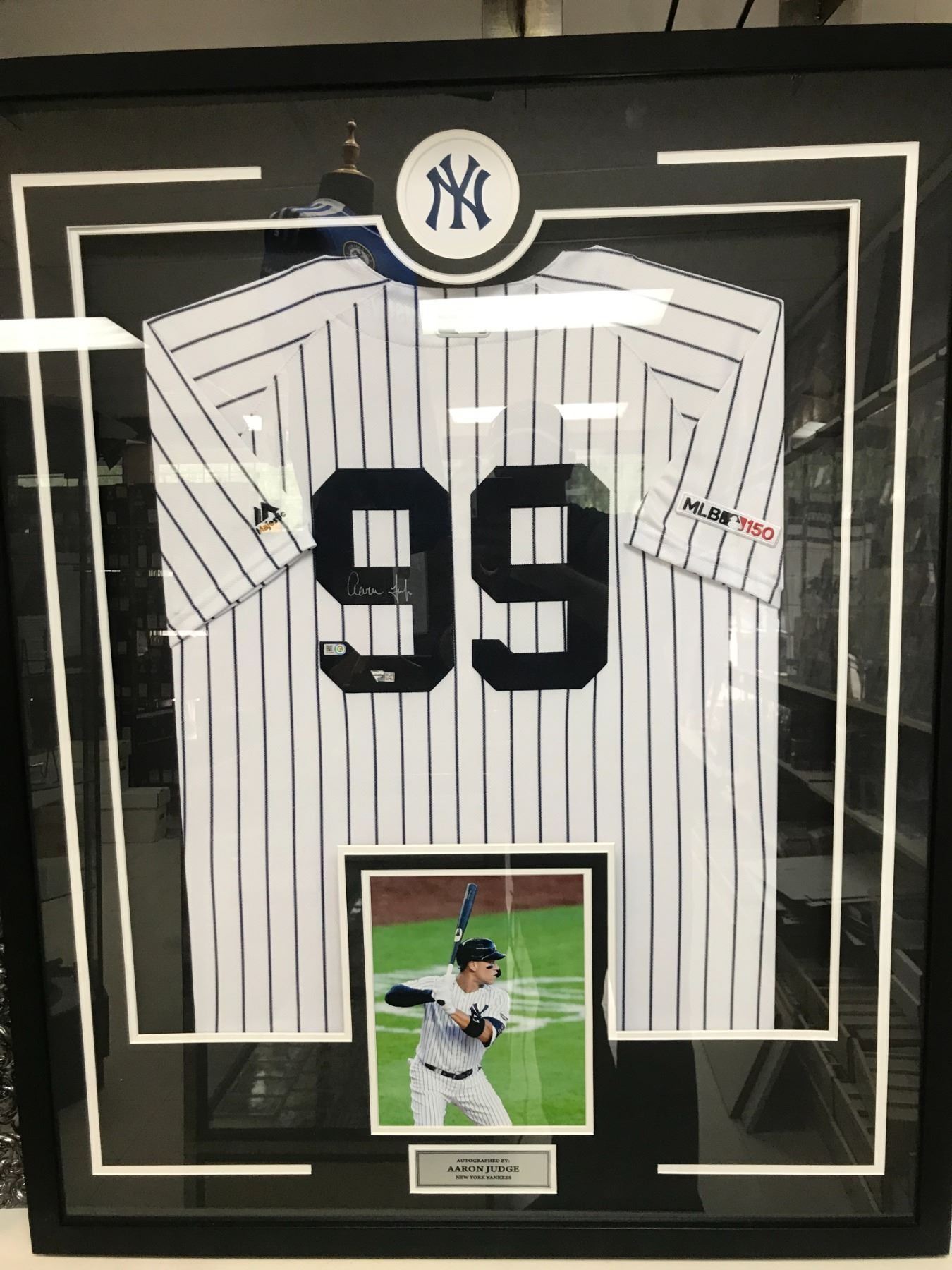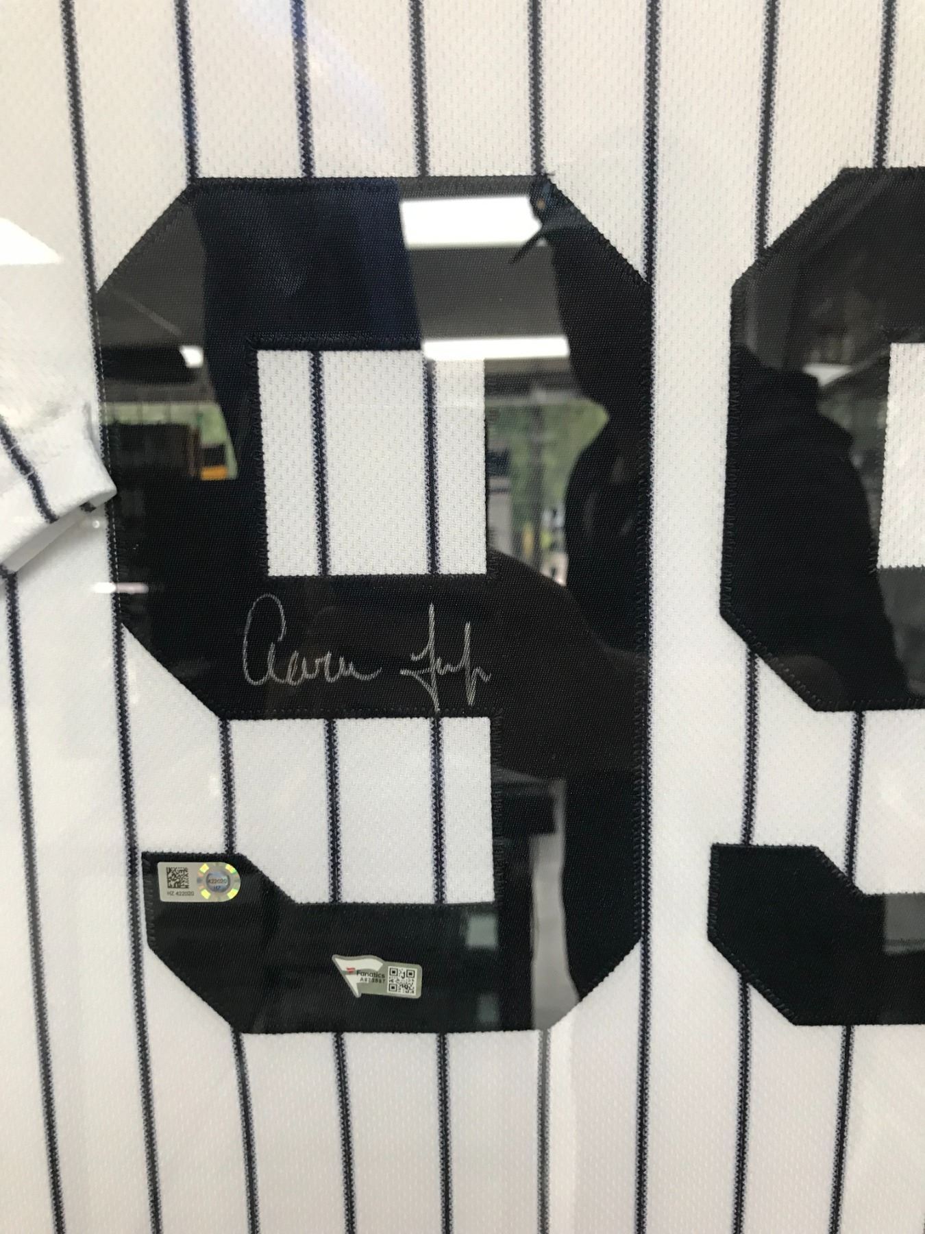 AARON JUDGE SIGNED AND CUSTOM FRAMED MAJESTIC JERSEY (FANATICS COA)