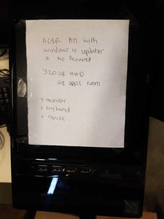 ACER DESKTOP COMPUTER WITH WINDOWS 10, 320GB HD, MONITOR, KEYBOARD AND MOUSE