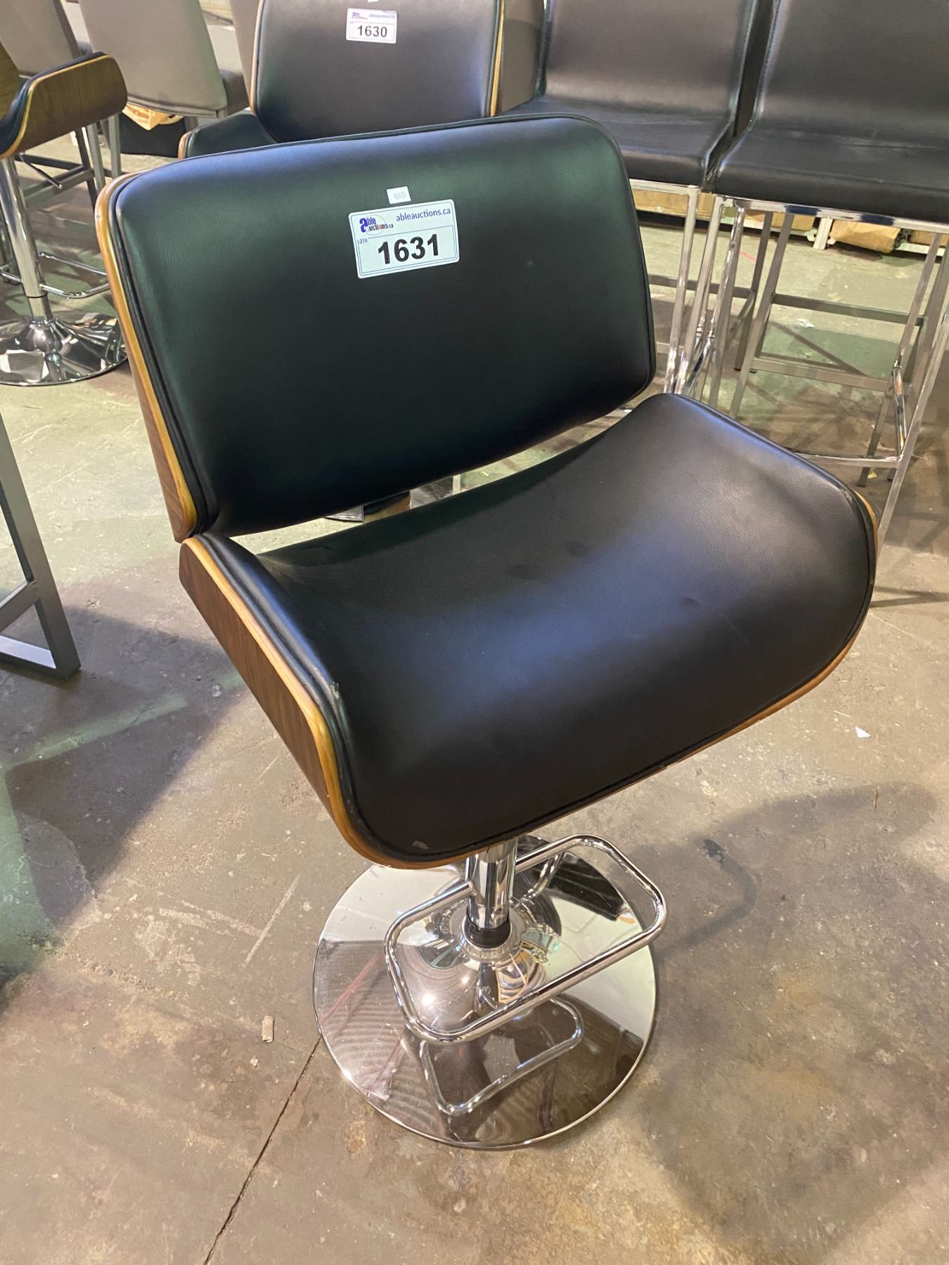 ADJUSTABLE + SWIVEL VIENNA BLACK LEATHER BAR STOOL