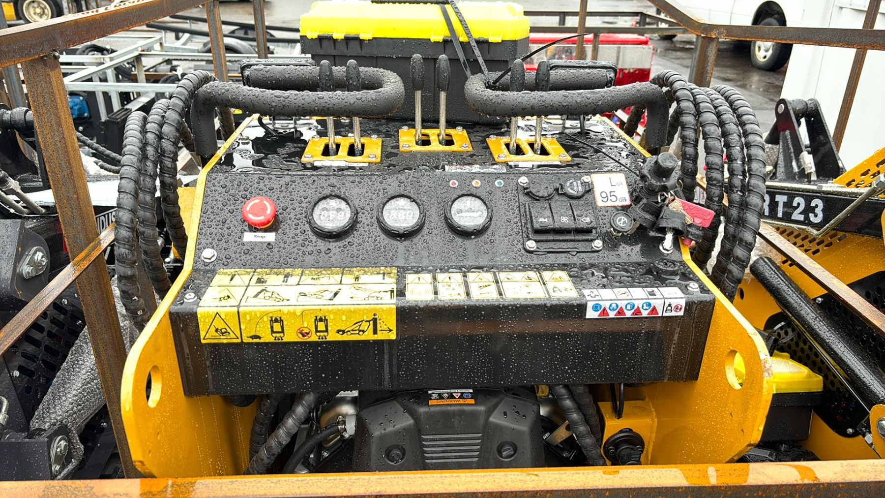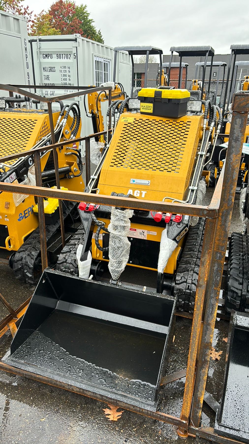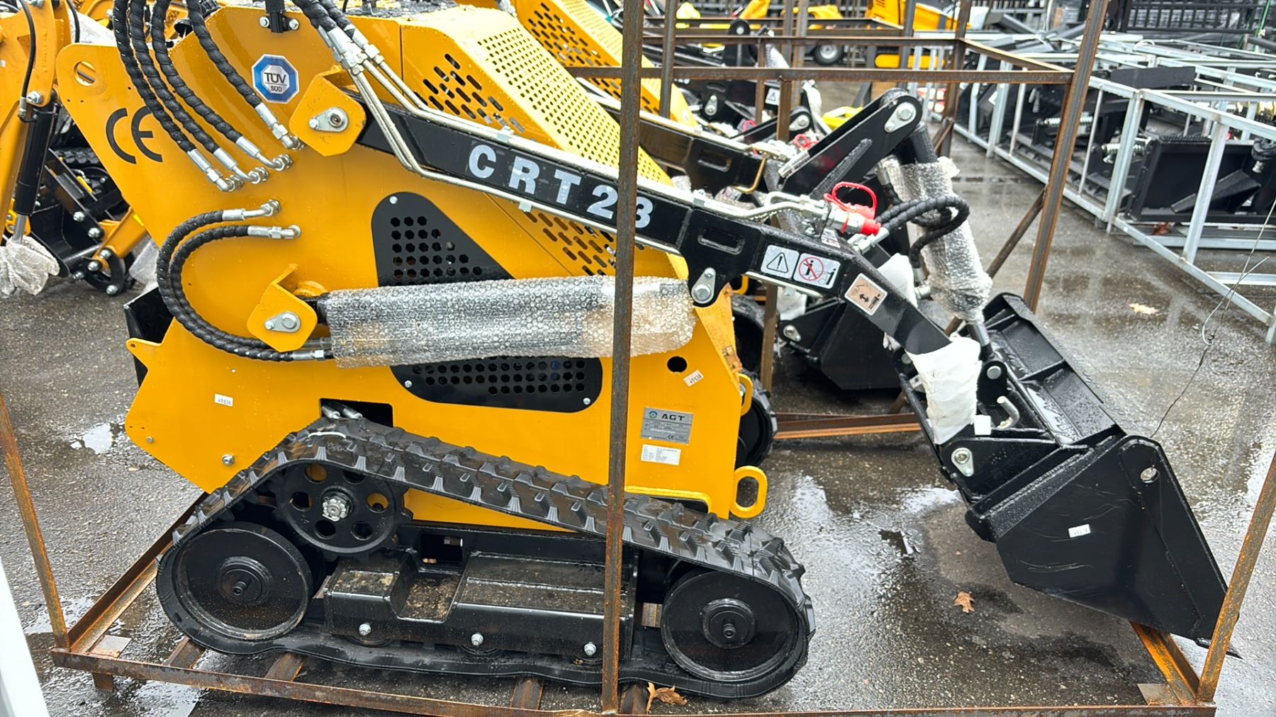 AGT INDUSTRIAL CRT23 YELLOW 13.5 HP GAS POWERED RUBBER TRACK RIDE ON HYDRAULIC MINI SKID STEER/ LOADER WITH 31" BUCKET / BUCKET CAPACITY OF .15M3 HAS KEYS *MEETS CANADIAN EMISSIONS CONTROL REGULATIONS*