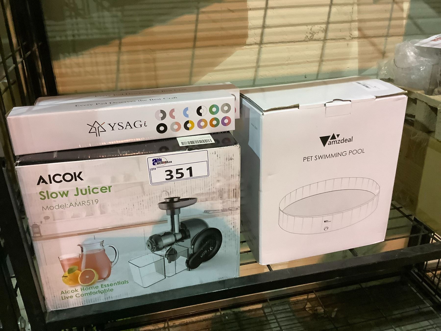 AICOK SLOW JUICER, AMZDEAL PET SWIMMING POOL & 2 DESK MATS