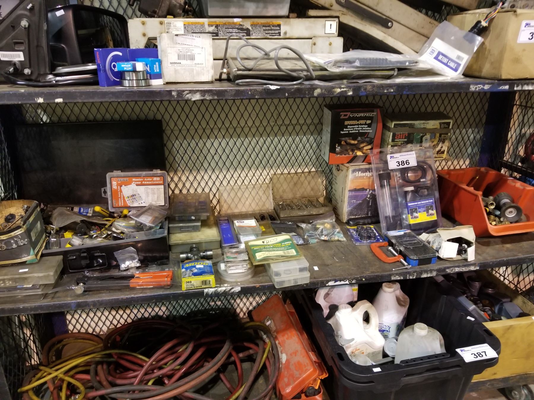 AIR COMPRESSOR, DISPOSABLE EAR PLUGS, SCREWDRIVER BIT, PUNCH KIT, ASSORTED TOOLS & MISC