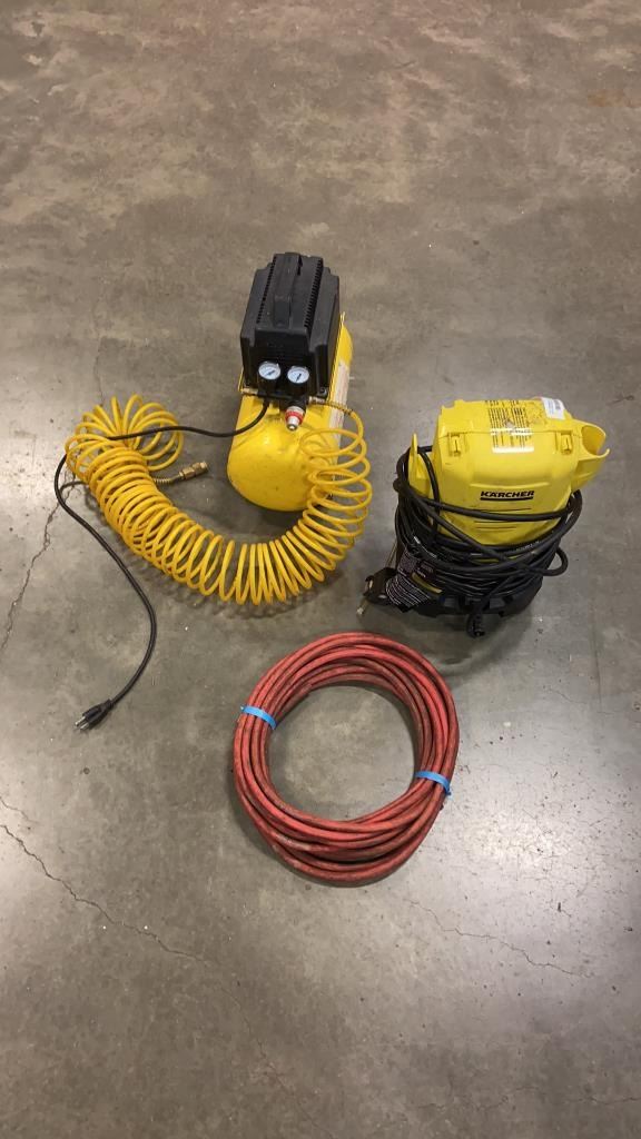AIR COMPRESSOR WORKING NEEDS RGULATOR WITH ELECTRIC KARCHER POWER WASHER NEEDS WAND