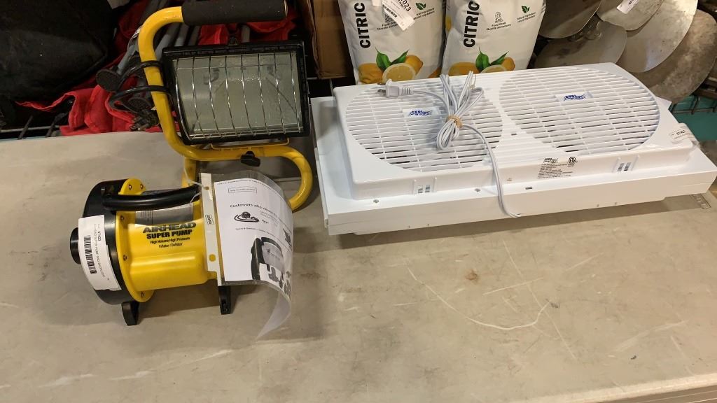 AIRHEAD SUPER PUMP, SHOPLIGHT AND DOUBLE WINDOW FAN ALL WORKING