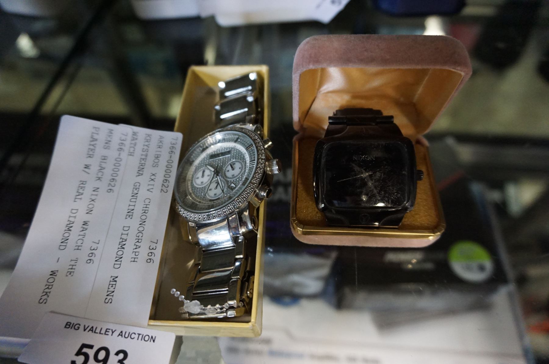AKRIBOS XXIV CHRONOGRAPH KRYSTERNA GENUINE DIAMOND MENS WATCH AND MENS BLACK NIXON WATCH THE PLAYER W/ REAL DIAMOND - WORKS