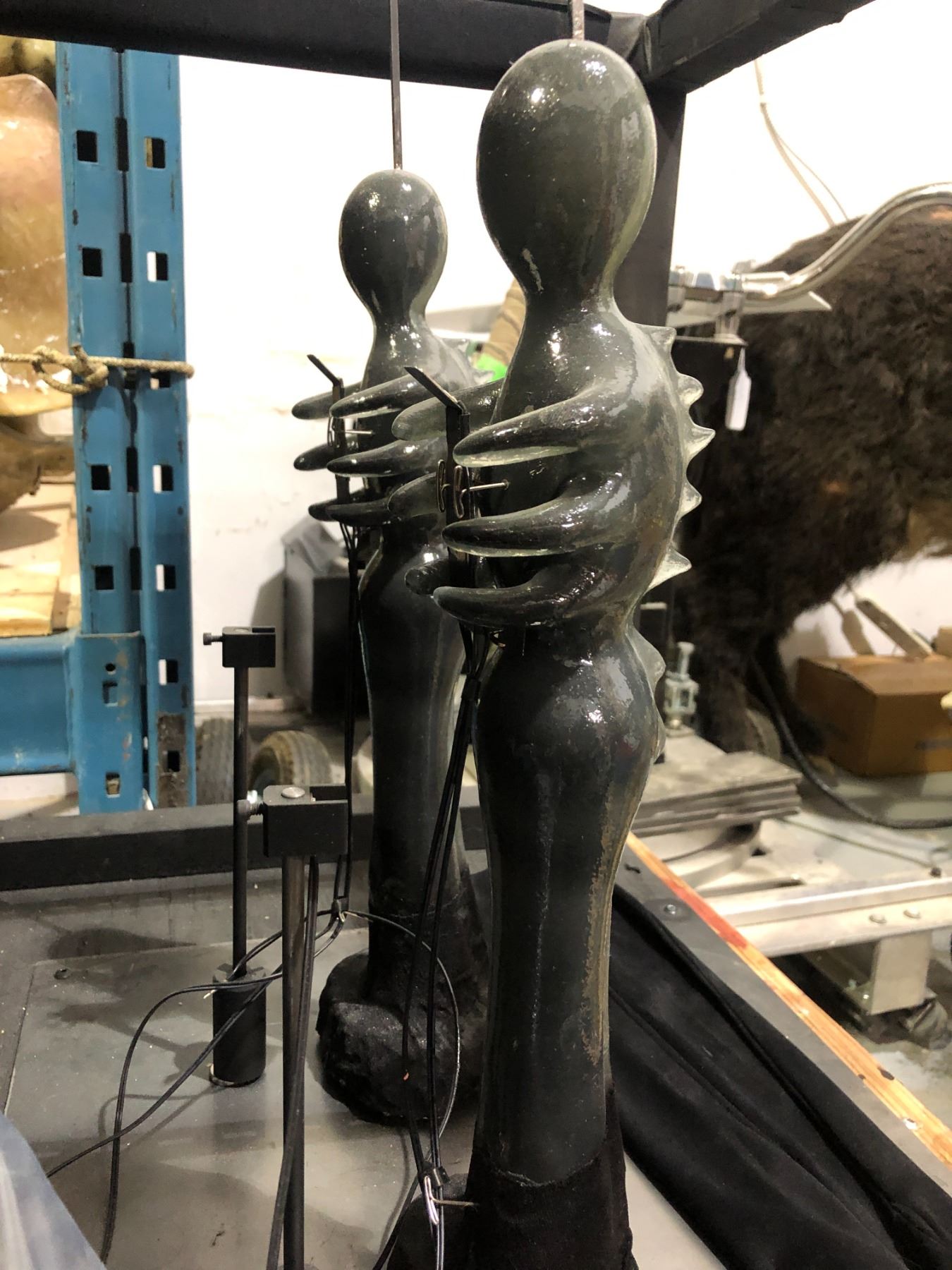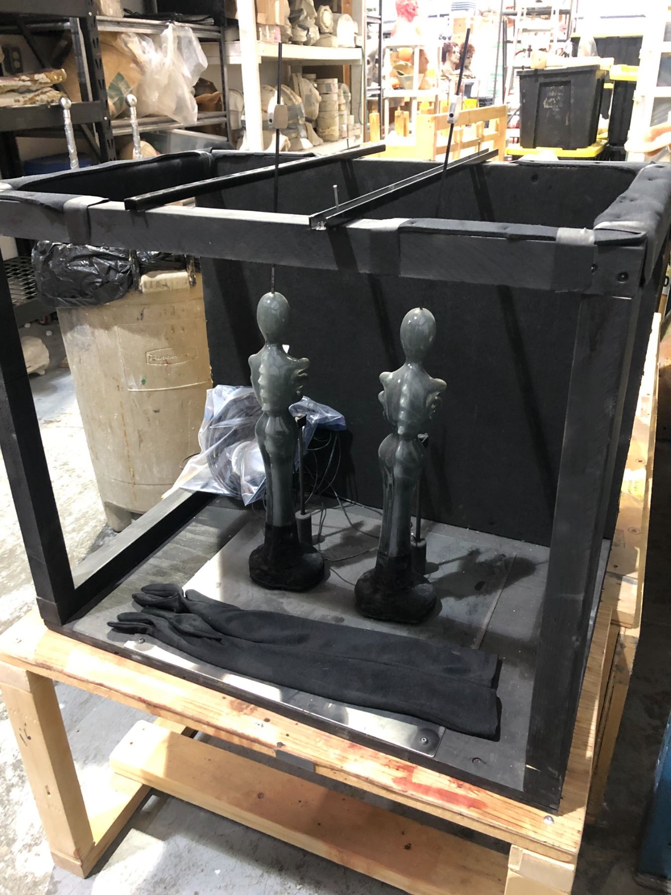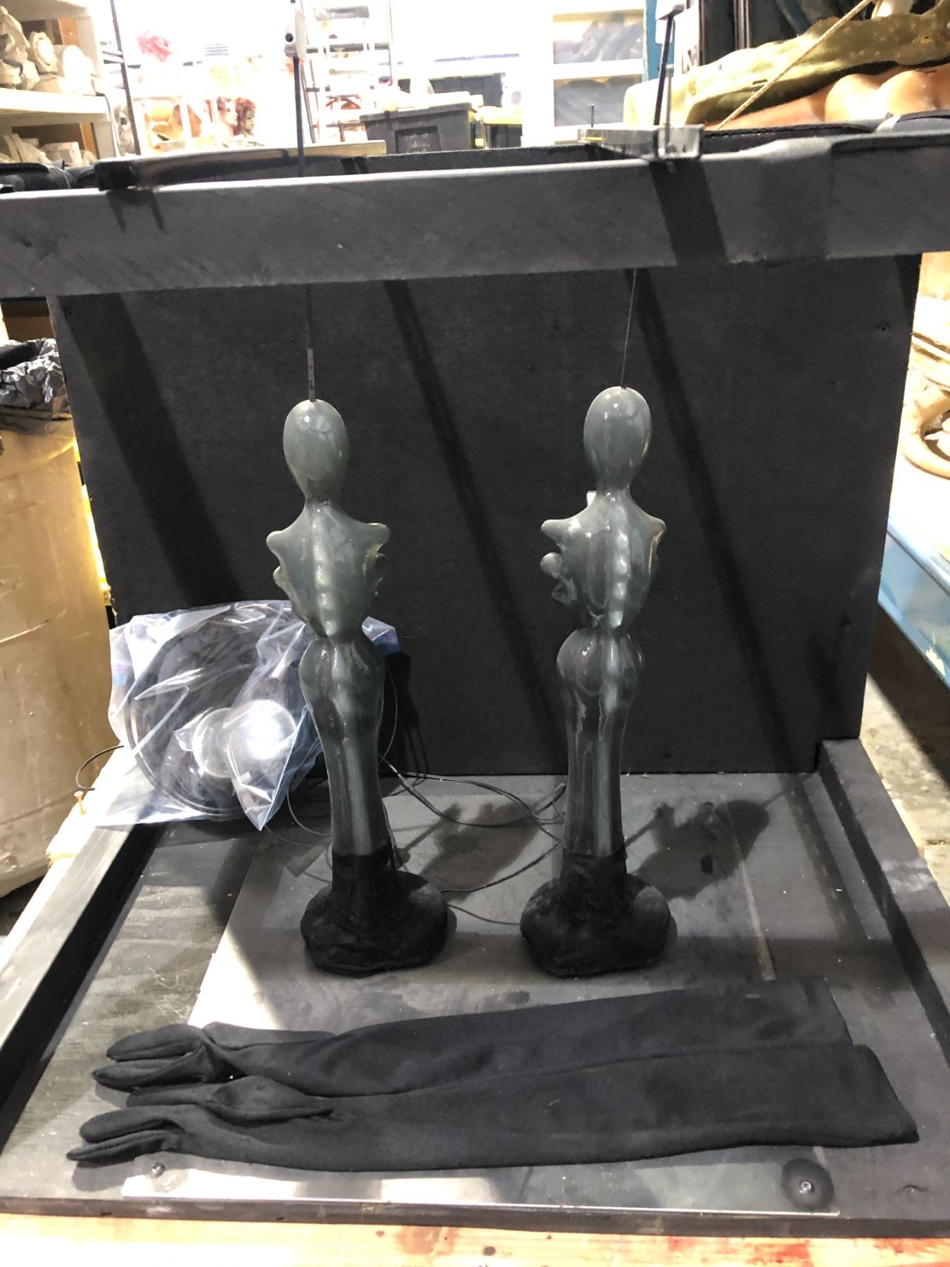 ALIEN PUPPET GAG from the "Twilight Zone" - Silicone Puppets with movement and LED Lights in Shadow Box with LED Lights - complete with gloves for the puppeteer - approx 27 1/2 x 11 1/2 x 23in