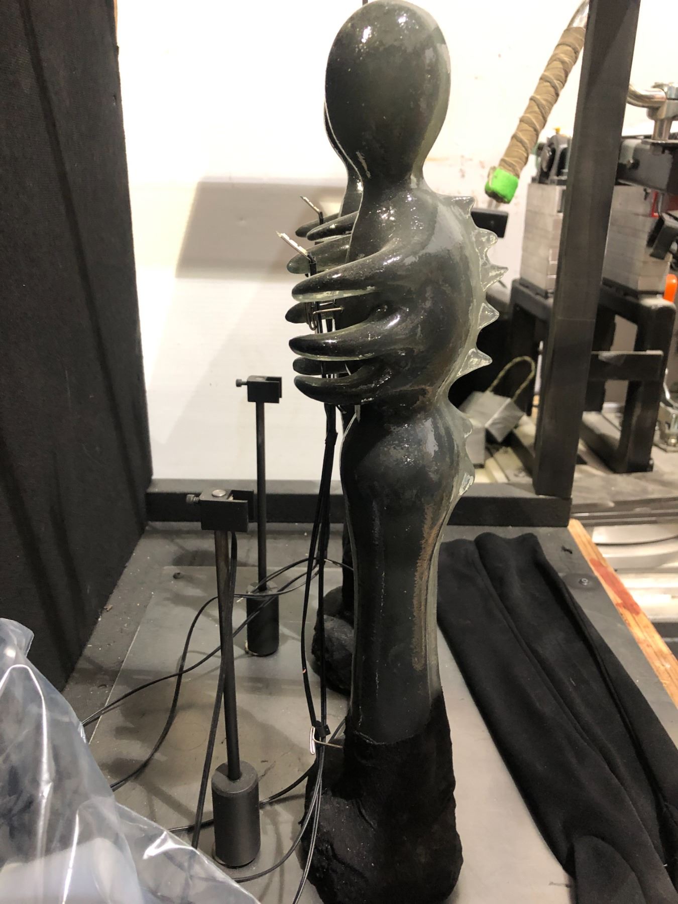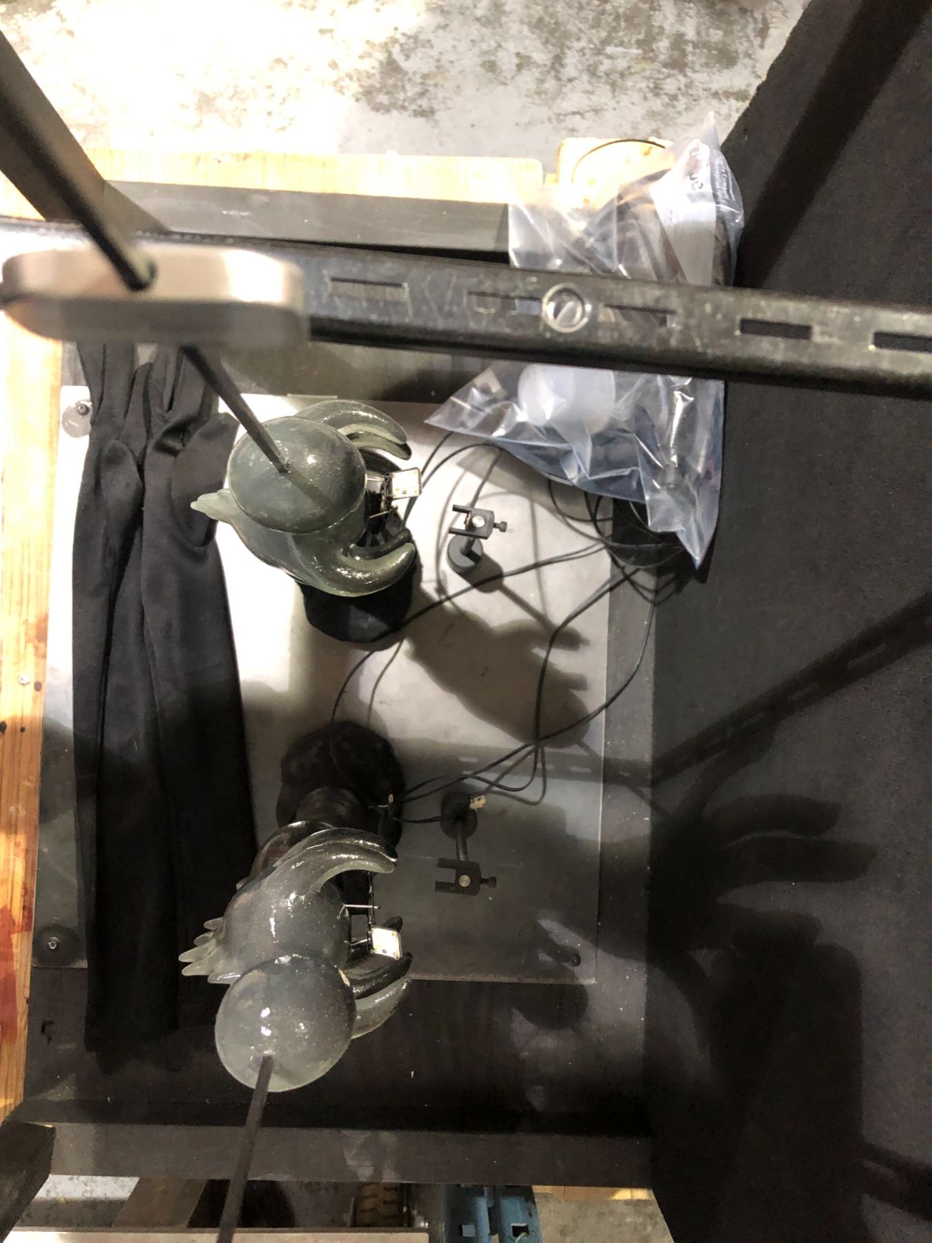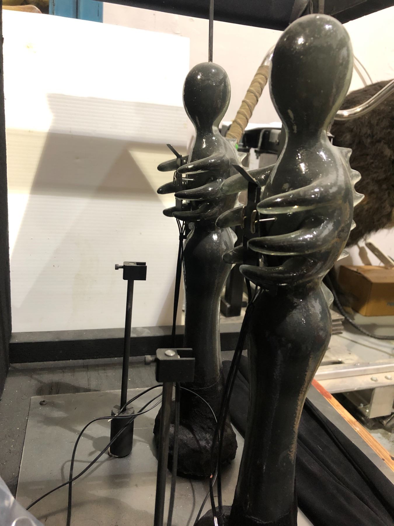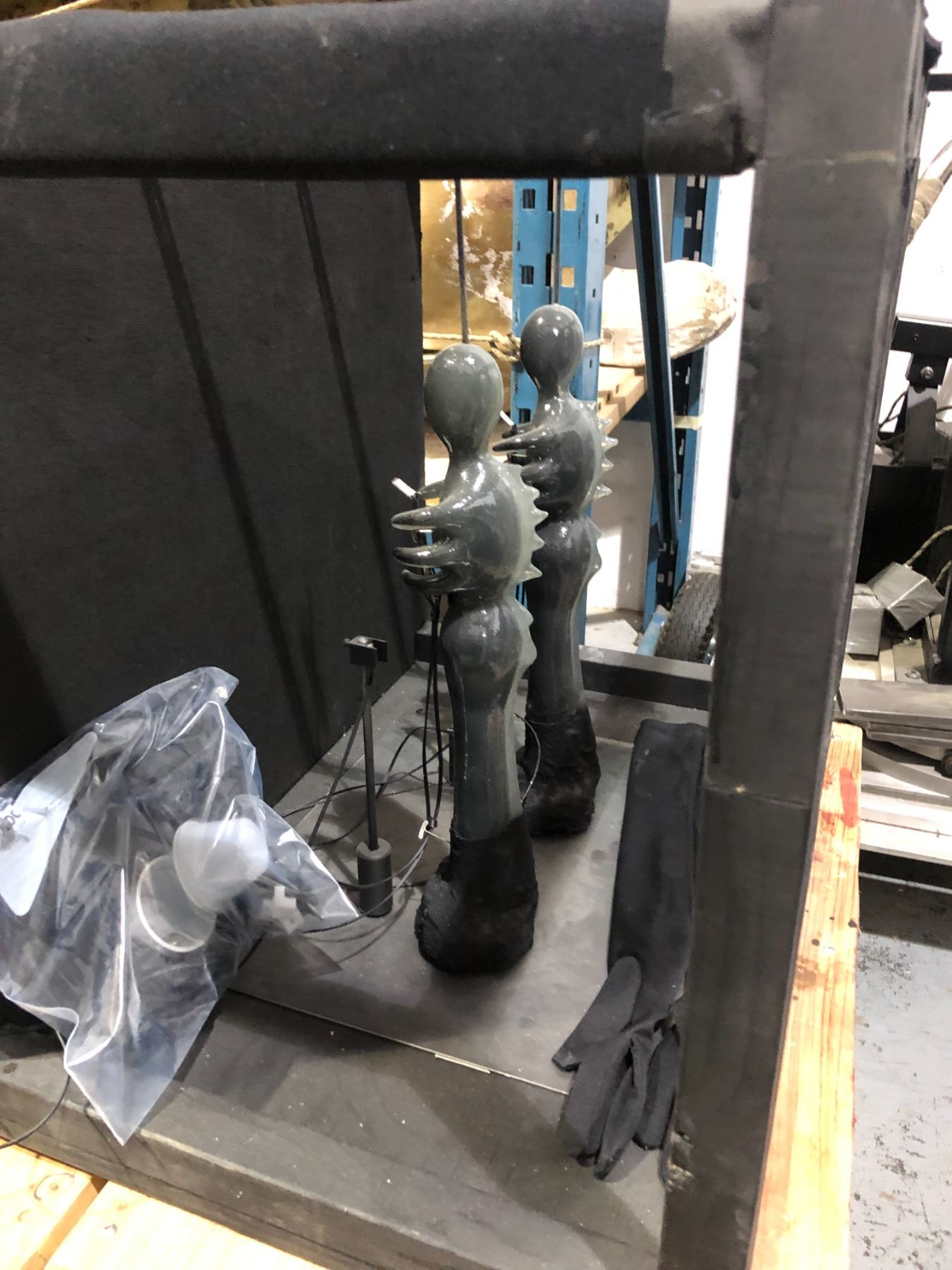 ALIEN PUPPET GAG from the "Twilight Zone" - Silicone Puppets with movement and LED Lights in Shadow Box with LED Lights - complete with gloves for the puppeteer - approx 27 1/2 x 11 1/2 x 23in